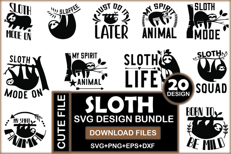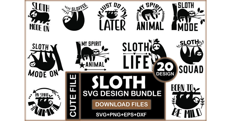 Slow with this Sloth SVG Bundle, featuring lazy designs, ideal for cute crafts.