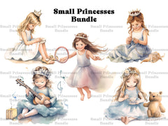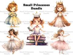 Discover the enchanting world of our Small Princesses clip art. These adorable digital illustrations feature petite princesses with big dreams, perfect for adding a touch of innocence and charm to your designs, whether for children's clothing, nursery decor, or themed parties, celebrating the magic of childhood and the wonder of fairy tales.