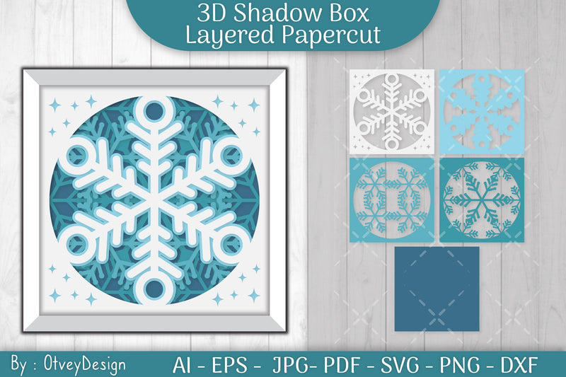 Transform your space with the Snowflake 3D Shadow Box Layered Papercut SVG Bundle, featuring intricate snowflake designs perfect for festive home decor and creative holiday crafts.