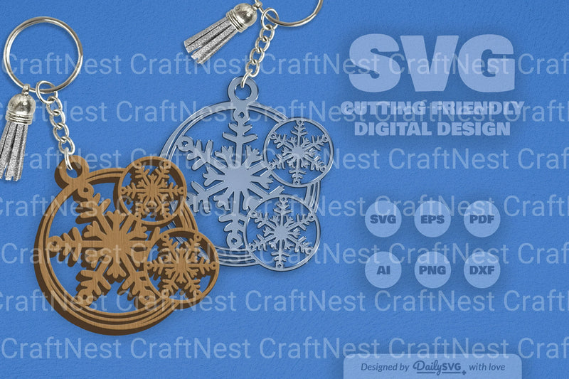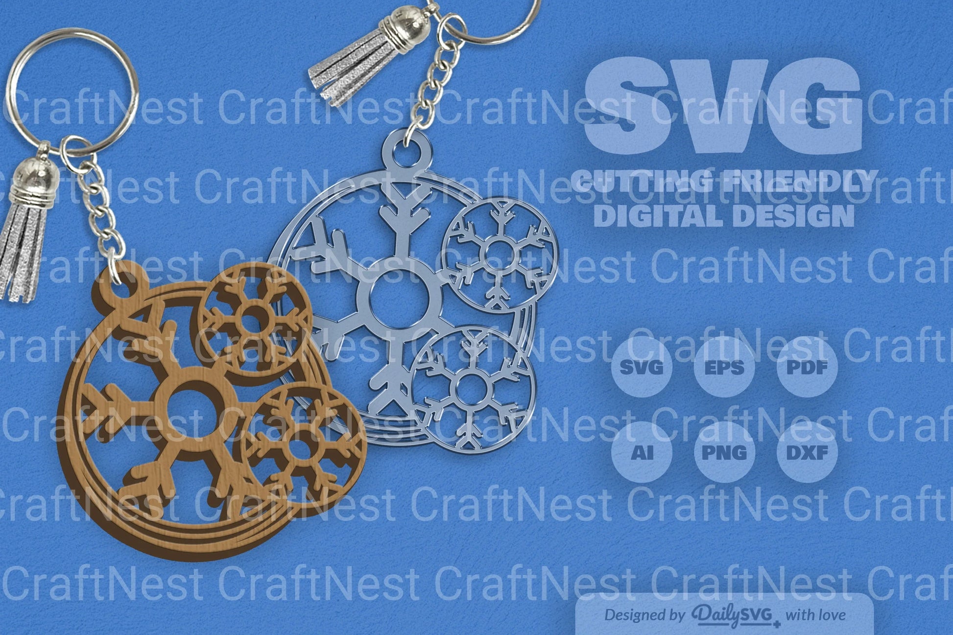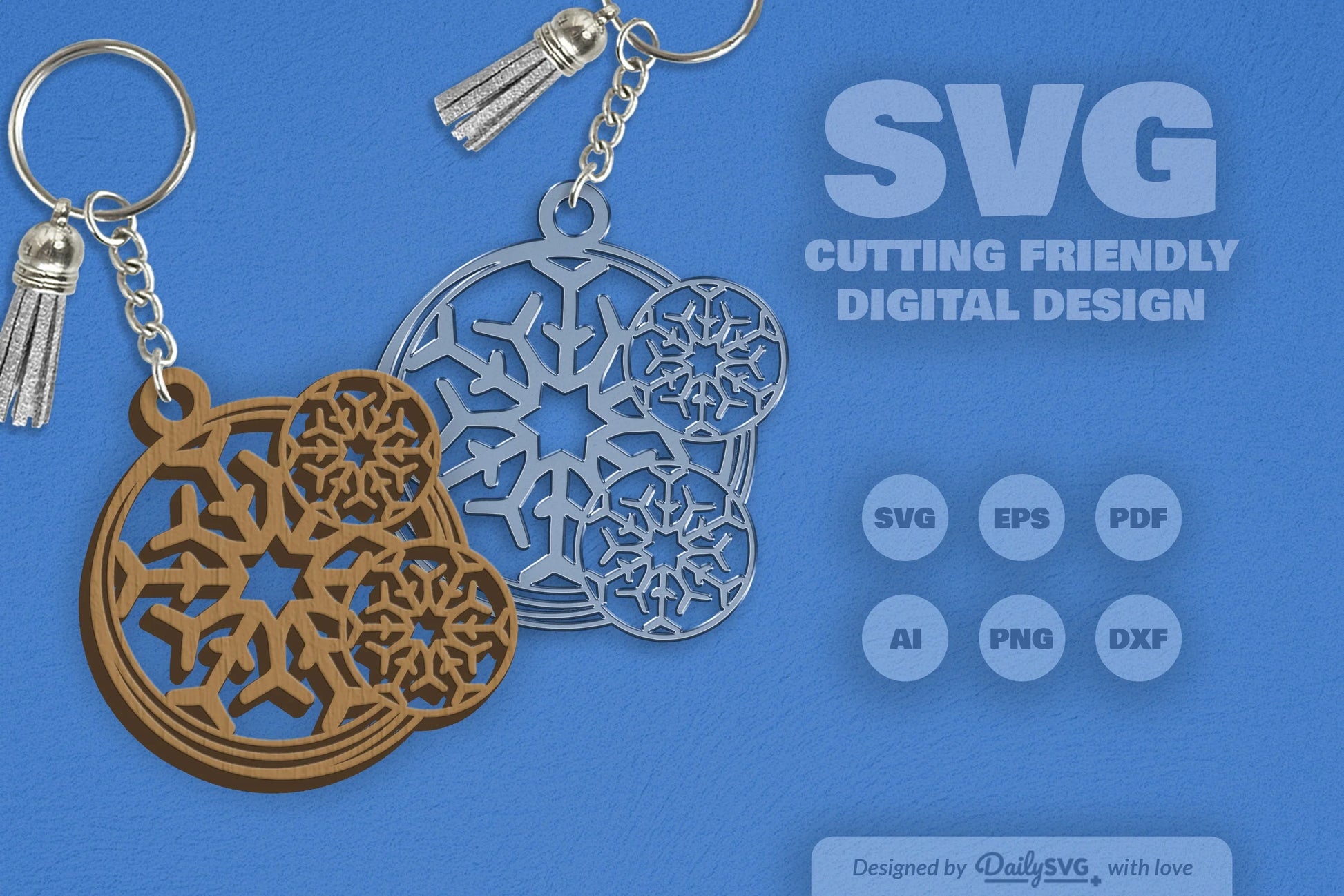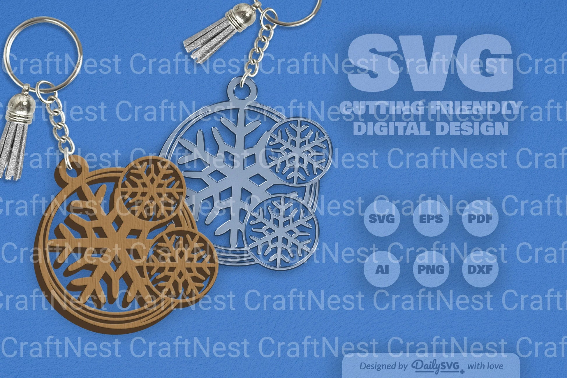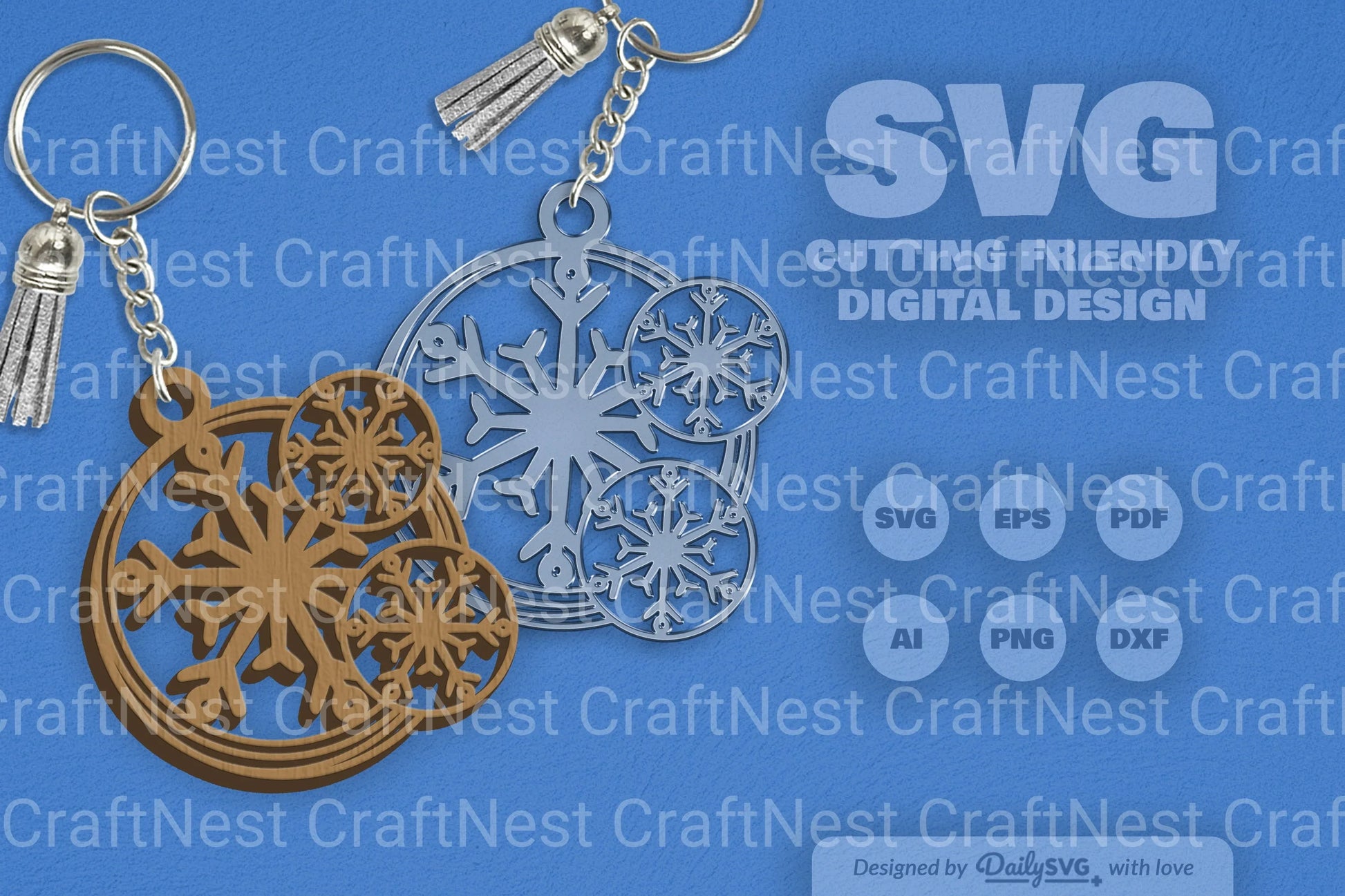 Enhance your creative projects with the Snowflake Keychain Clipart - Daily SVG Bundle, featuring intricate snowflake designs perfect for winter-themed crafts and personalized keychains.