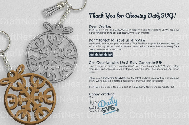 Enhance your holiday crafts with the Snowflakes Round Bauble SVG Bundle, featuring intricate snowflake designs perfect for festive decorations and personalized gifts.