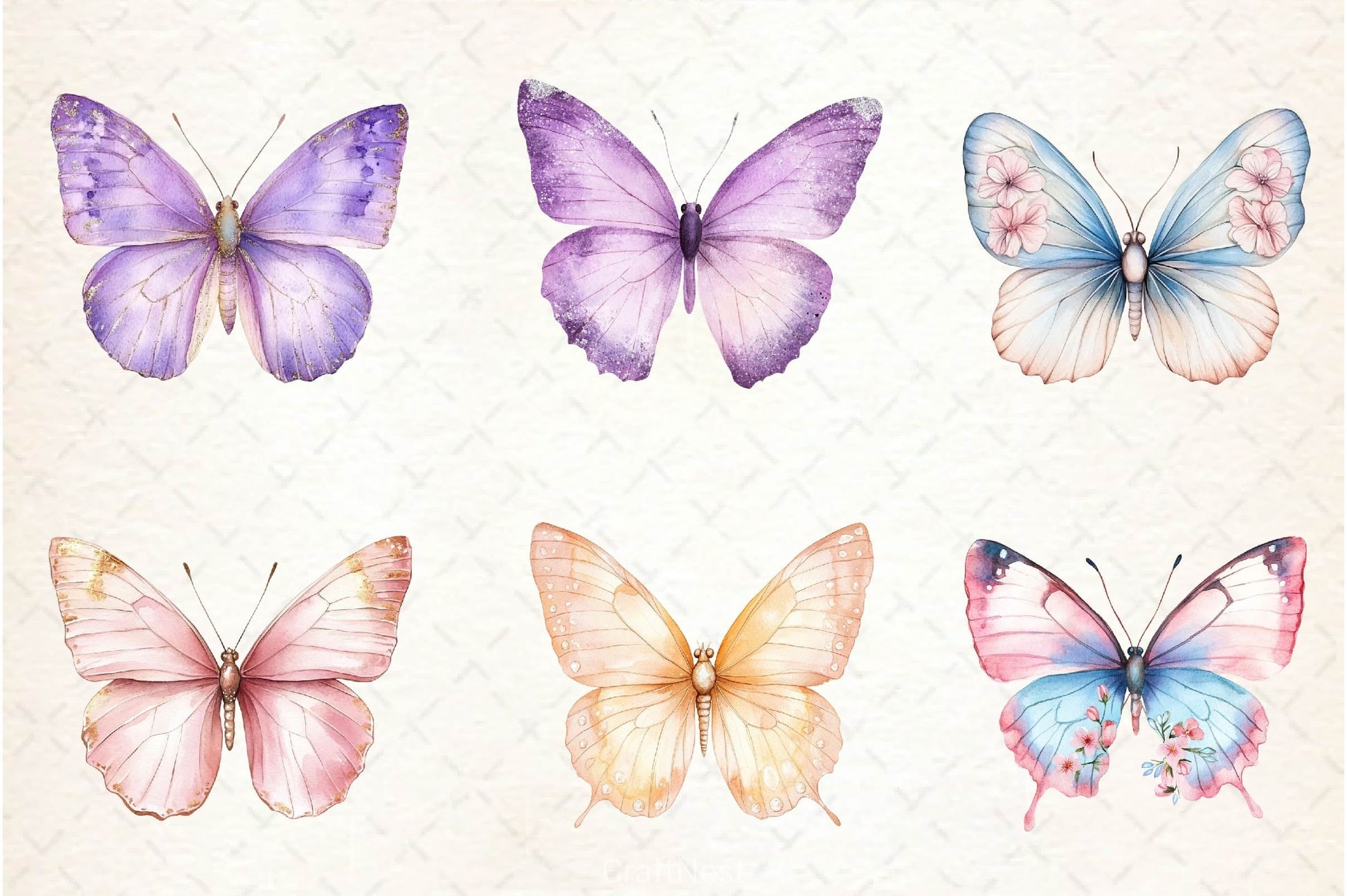 Soft Girly Butterfly Clipart Bundle