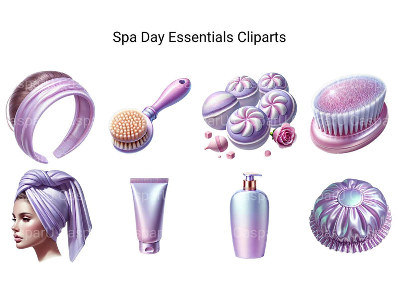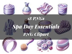 Relax with this Spa Day Essentials Clipart set, featuring calming designs, perfect for wellness projects.