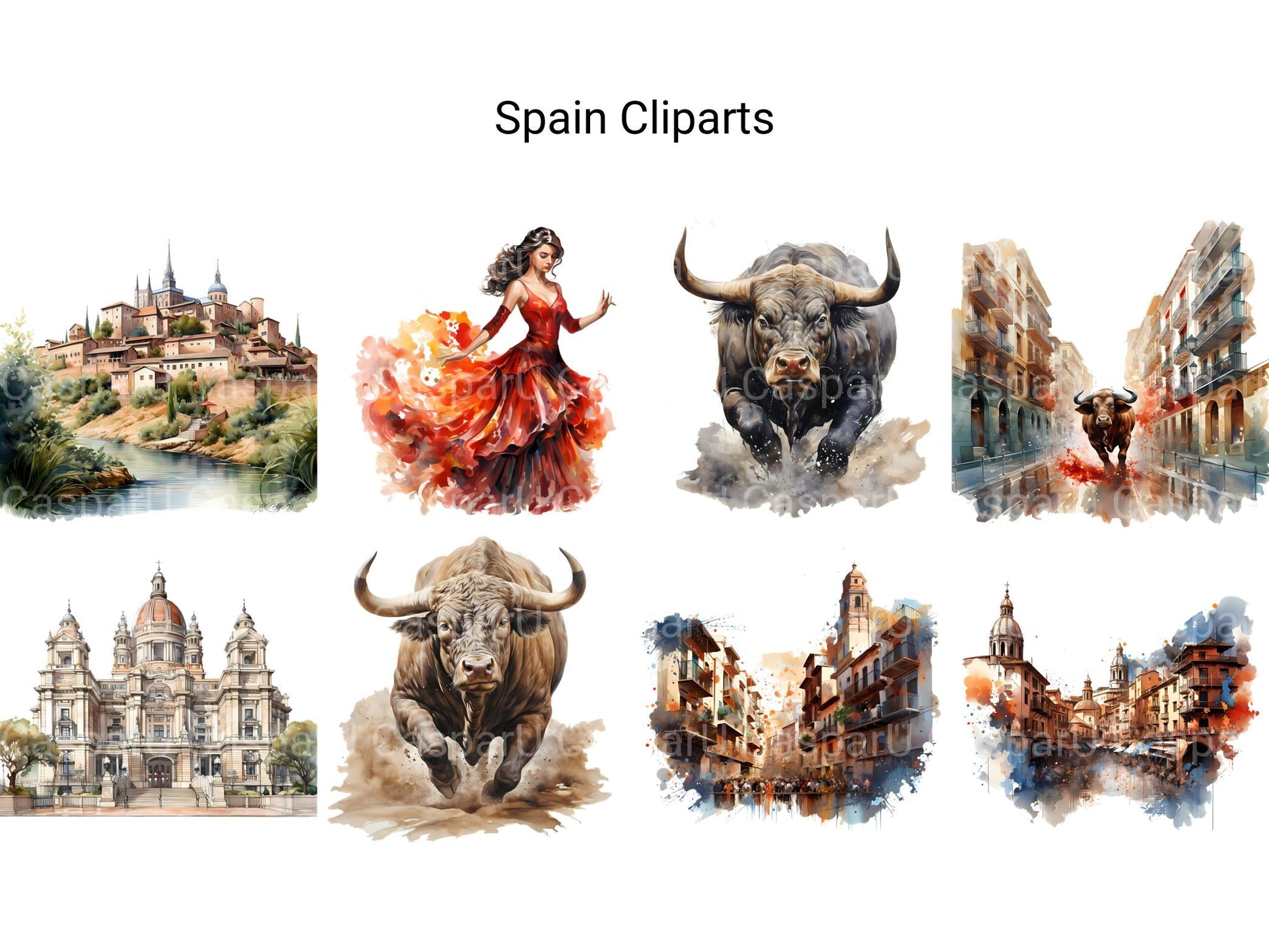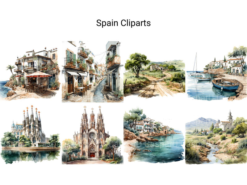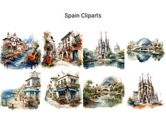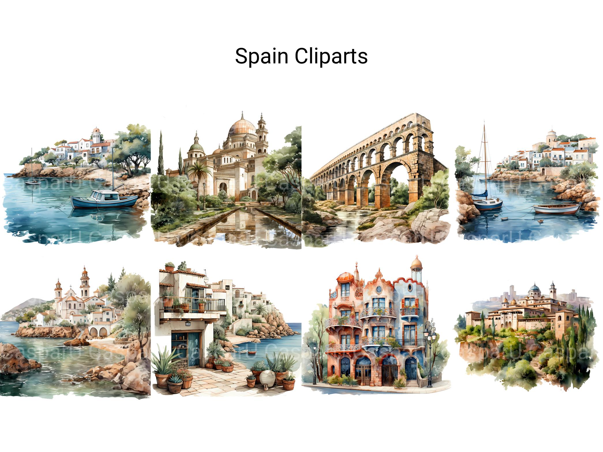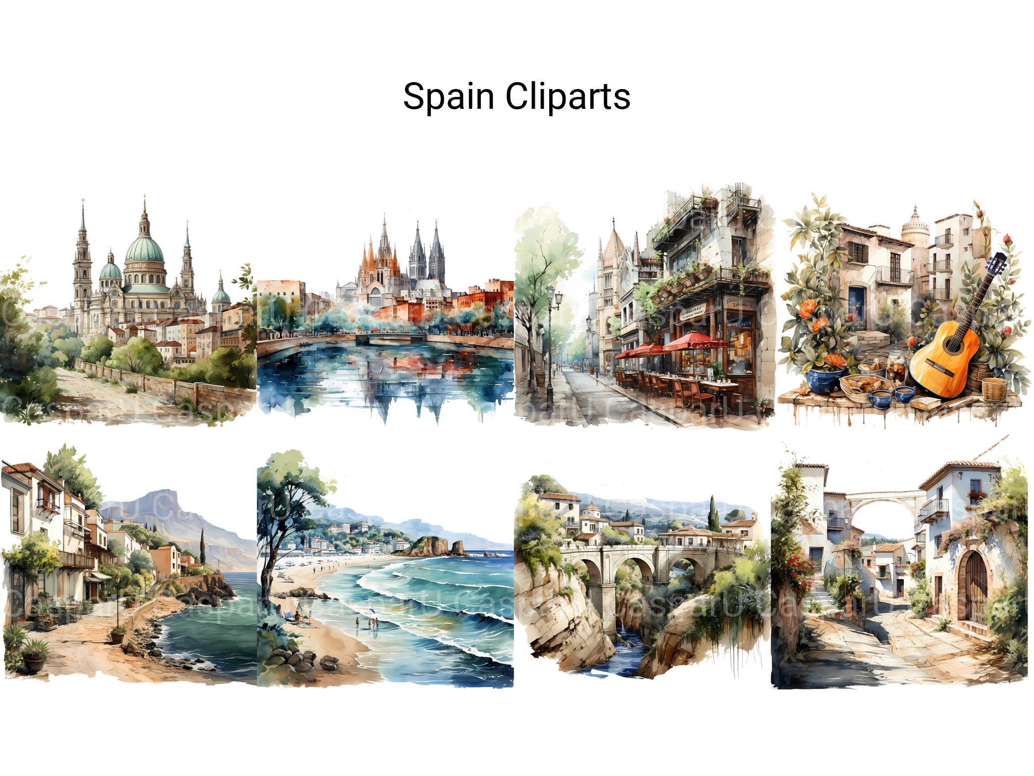 Experience the allure of Spain with digital clip art showcasing its rich cultural heritage, stunning architecture, and vibrant festivals. From the ornate beauty of the Alhambra to the lively streets of Barcelona, these illustrations evoke the passion and romance of Spain, perfect for adding a touch of Mediterranean charm to your projects, whether for travel posters, cultural events, or educational materials, inviting viewers to immerse themselves in the vibrant spirit of this enchanting country.