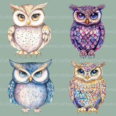 Glitter with this Sparkling Owls 12 Clipart Bundle, featuring sparkly owl designs, ideal for birds crafts.