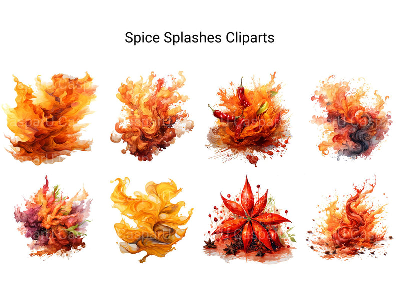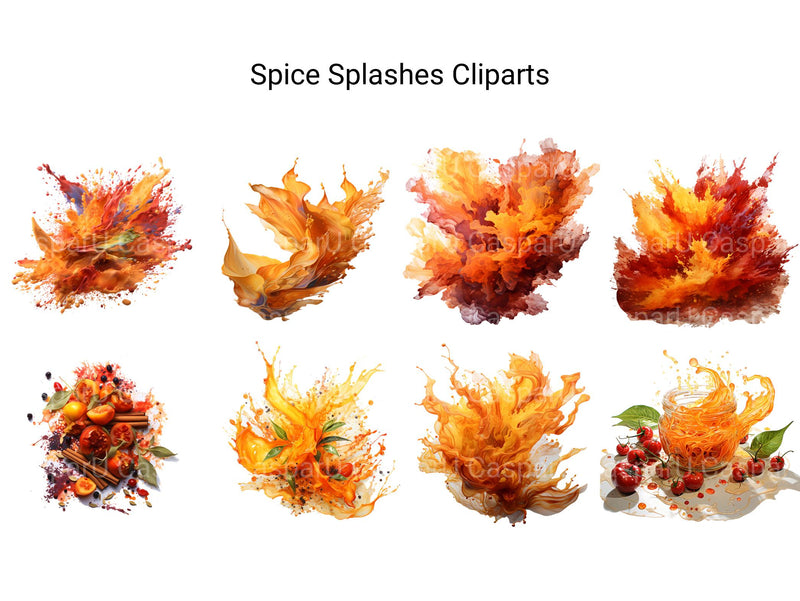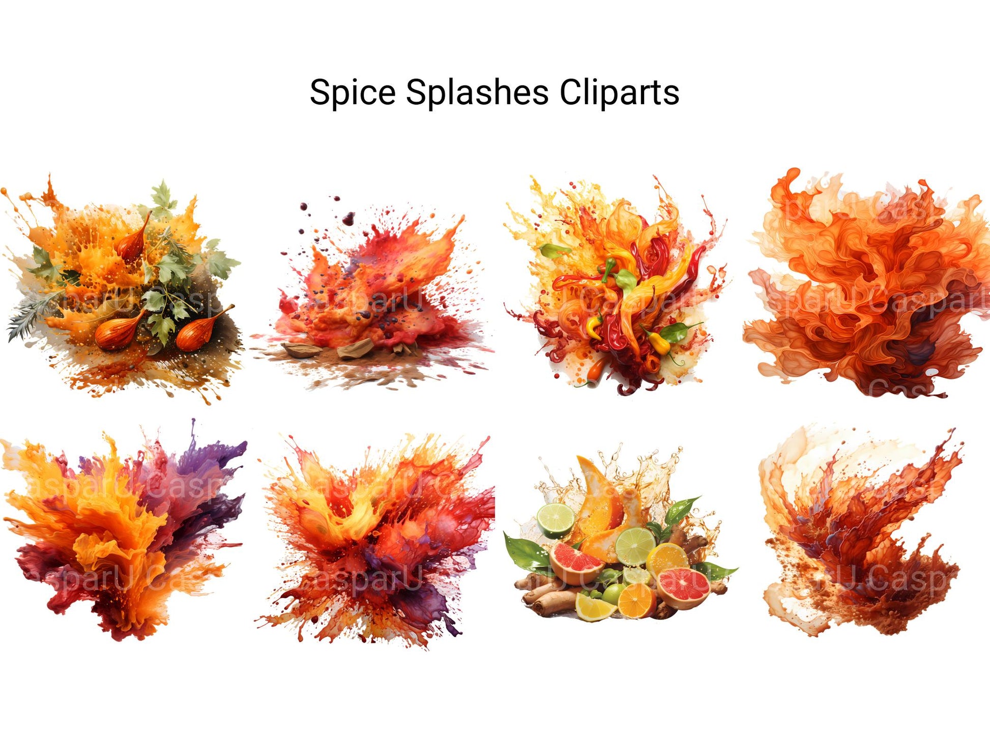 Add a burst of flavor and warmth to your designs with our Spice Splashes clip art. These digital illustrations feature warm tones of cinnamon, nutmeg, and ginger inspired by the rich spices of the season, perfect for adding a touch of cozy comfort and culinary charm to your projects, whether for food graphics, recipe cards, or seasonal branding, infusing your creations with the irresistible allure and aromatic essence of autumn spices.
