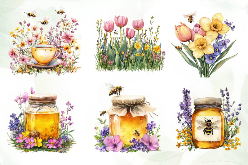 Buzz with this Spring Bees Clipart Bundle, featuring spring bee designs, perfect for seasonal garden crafts.