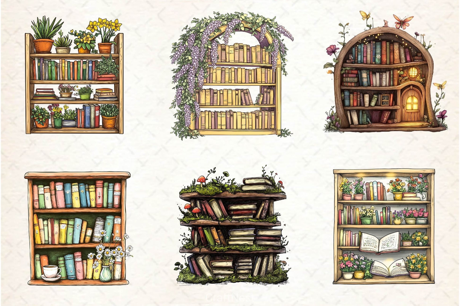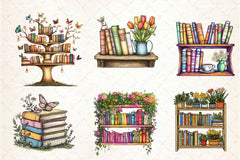 Spring decorated bookshelves perfect for seasonal reading projects.