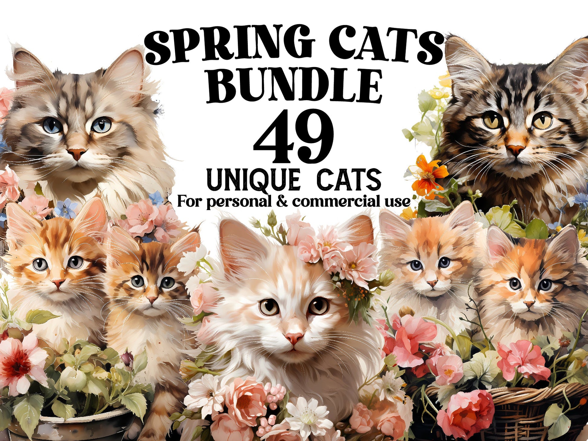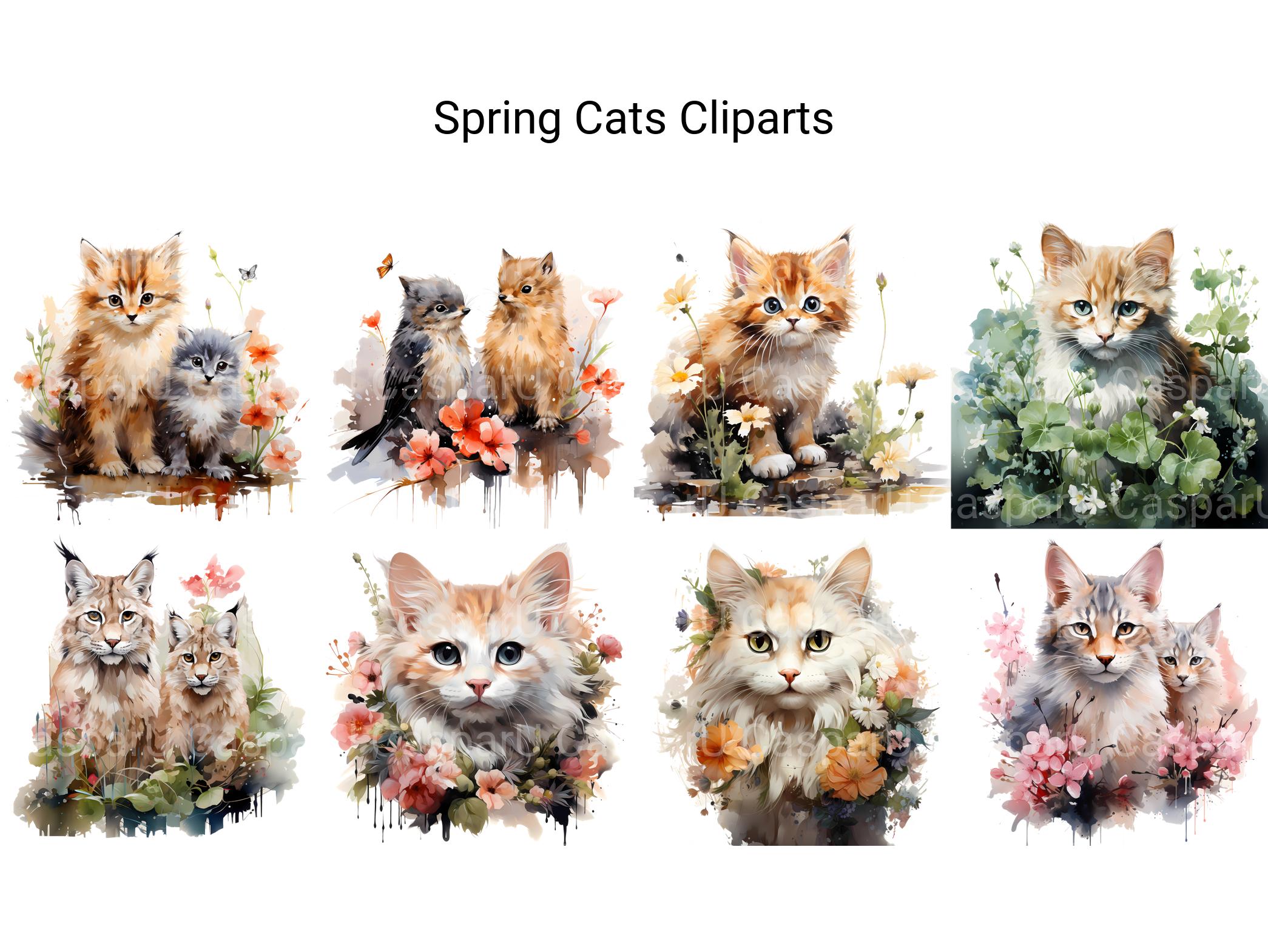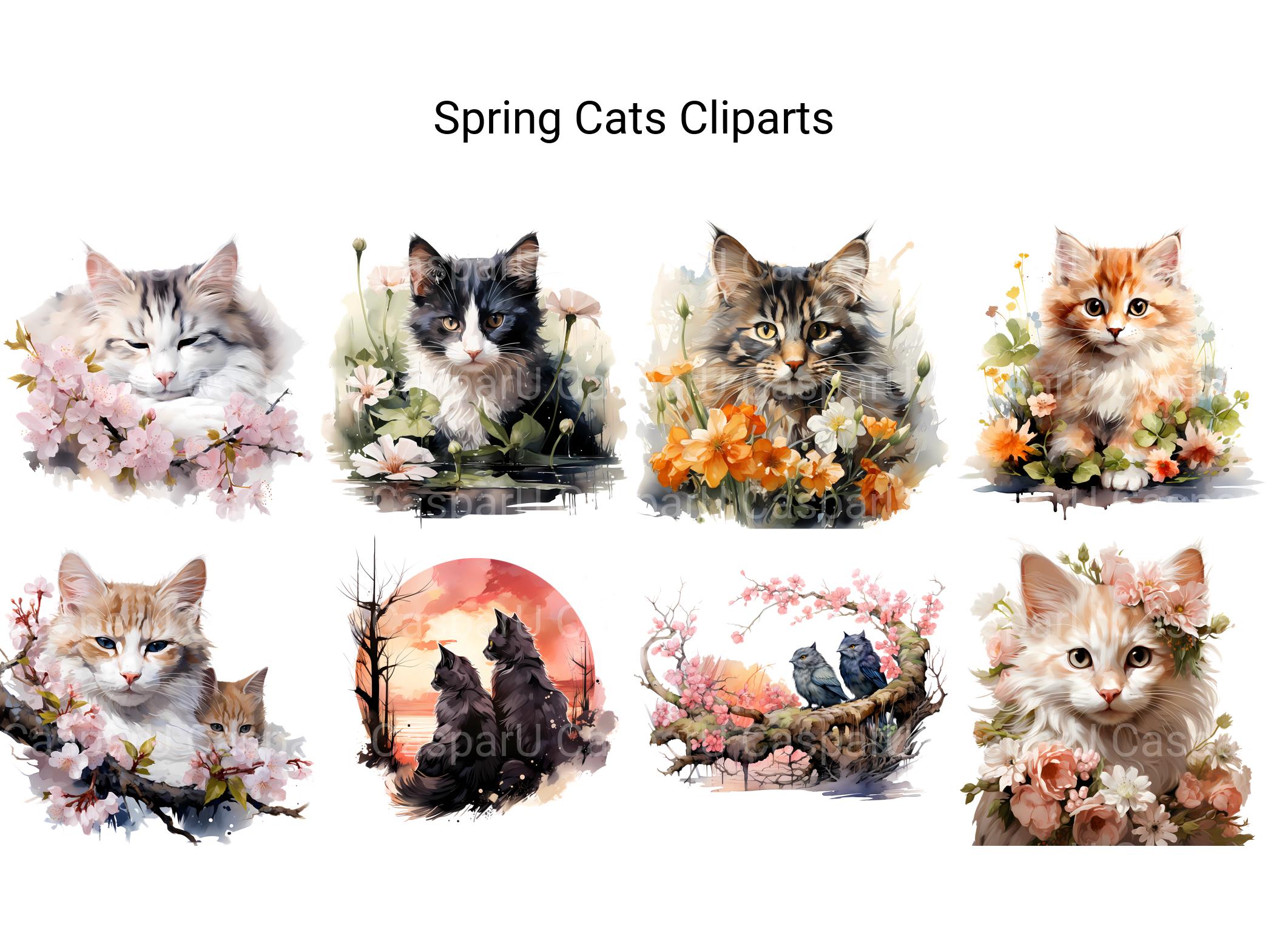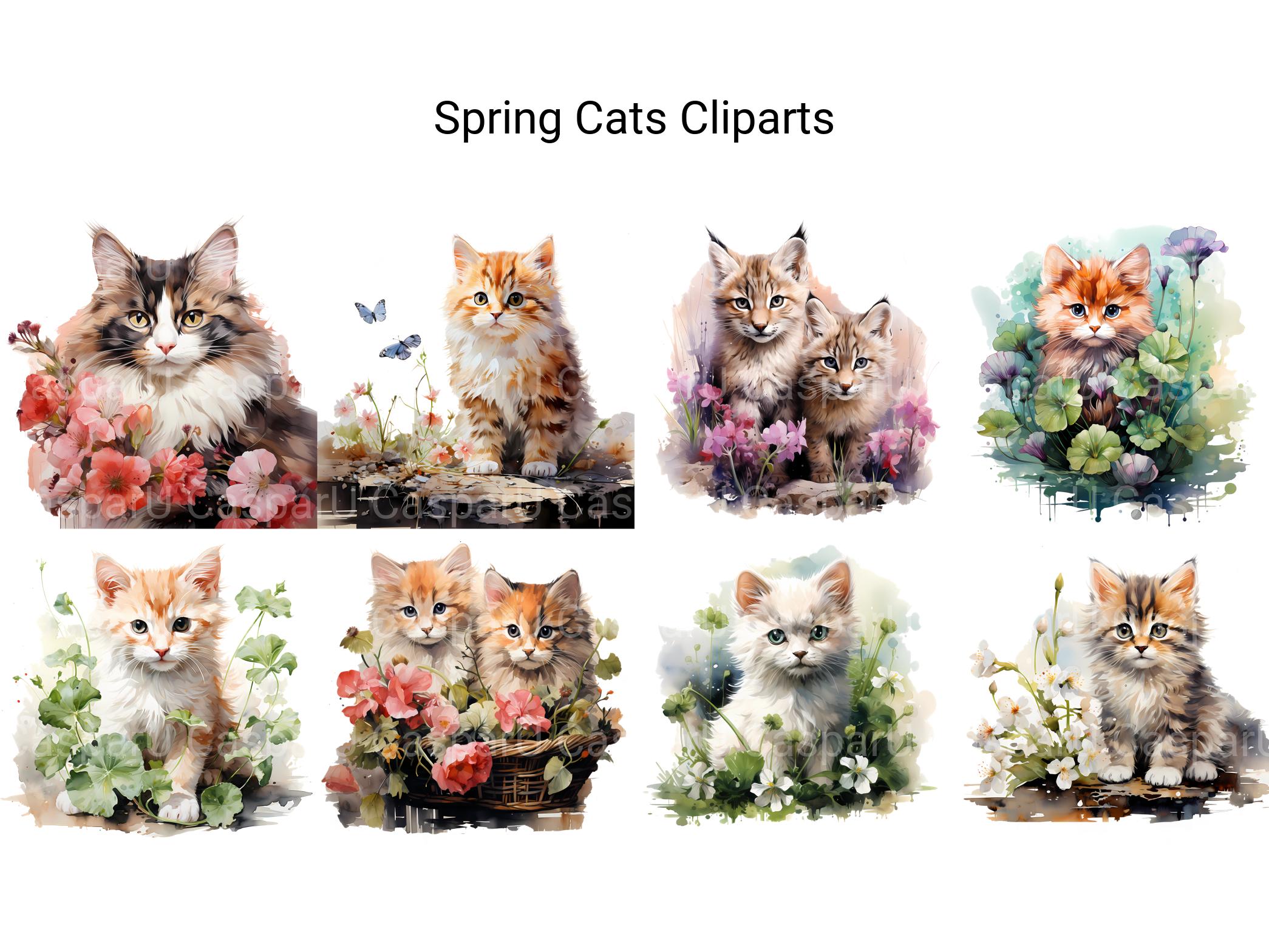 Delight in the whimsical charm and feline grace of Spring Cats digital clip art featuring playful cats and colorful spring scenes. From curious kittens to elegant tabbies, these charming images capture the beauty and charm of our feline friends, perfect for adding a touch of cat-inspired whimsy to your spring projects. Let the playful antics and mischievous charm of Spring Cats infuse your designs with a sense of feline fun and springtime delight.