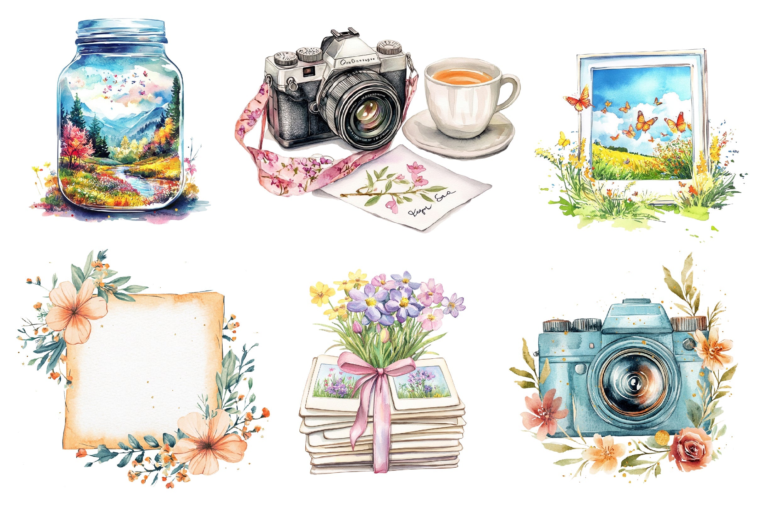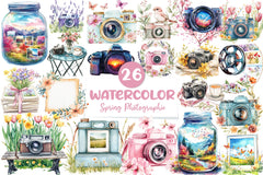 Capture with this Spring Day Photography Clipart Bundle, featuring camera spring designs, perfect for hobby crafts.