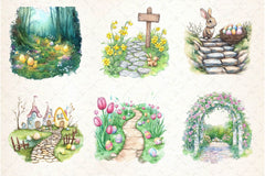 Beautiful spring pathways decorated for Easter celebration projects.