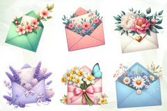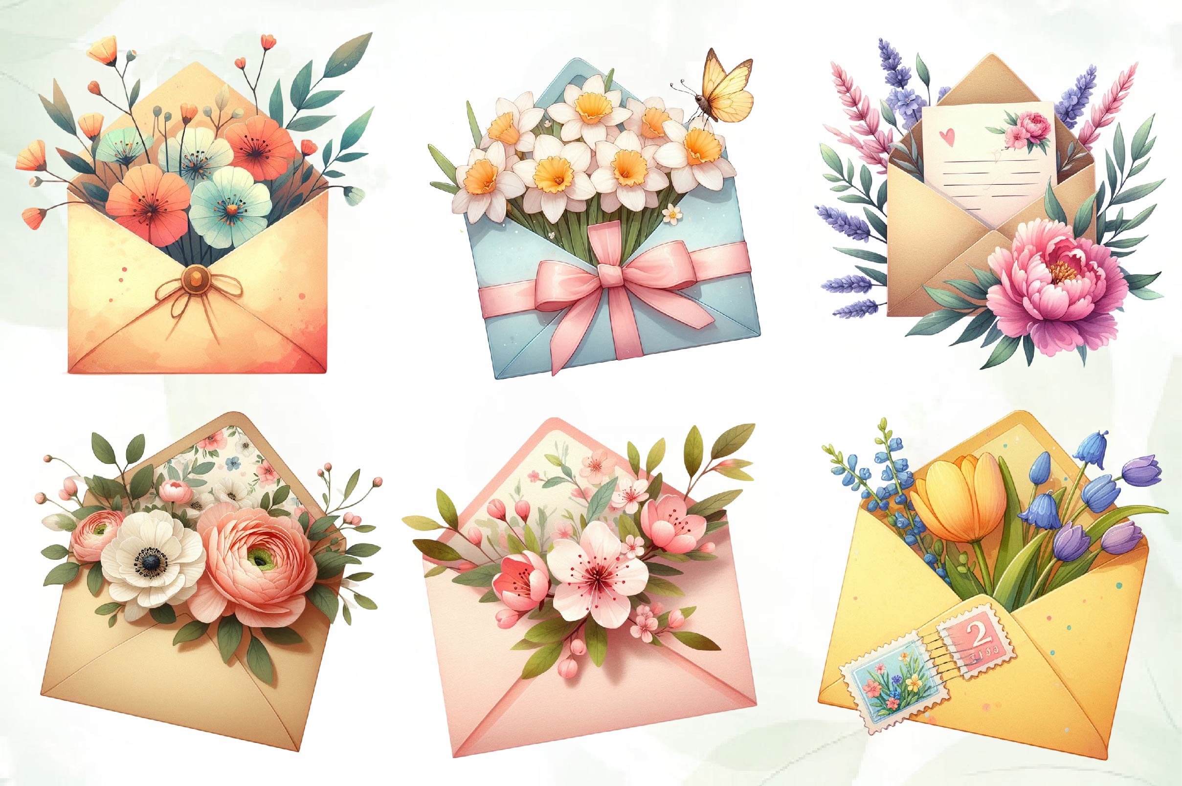 Mail with this Spring Envelope Flower Letter Clipart Bundle, featuring flower letter envelopes, ideal for spring communication crafts.
