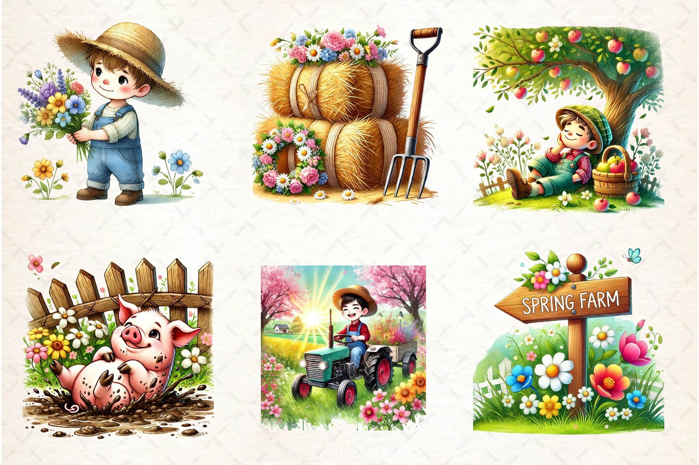 Plant with this Spring Farmer Clipart Bundle, featuring agricultural spring designs, perfect for farming season crafts.