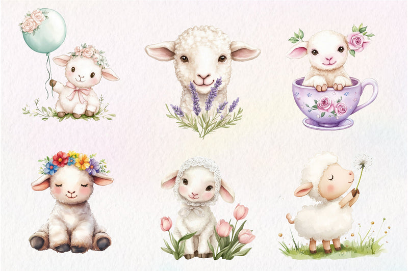 Bloom with this Spring Floral Baby Lamb Clipart Bundle, featuring flower lamb designs, ideal for spring baby animal crafts.