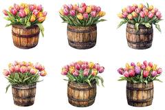 Bloom with this Spring Floral Barrel Clipart Bundle, featuring floral barrel designs, perfect for spring decor crafts.