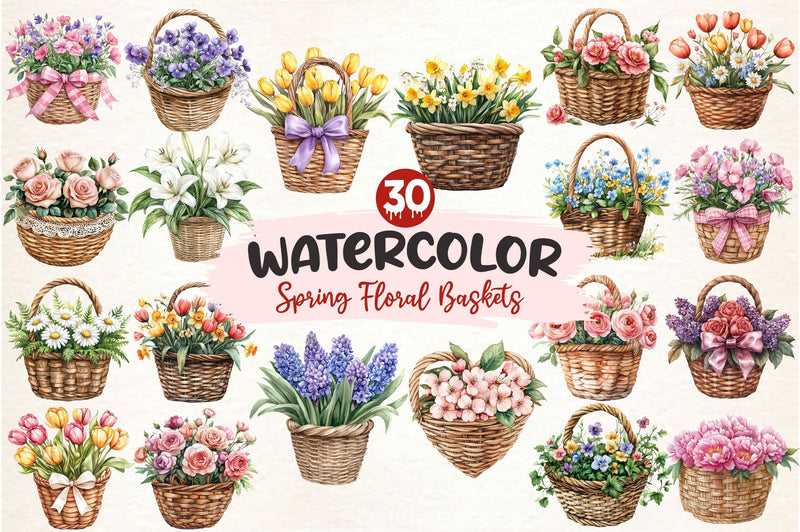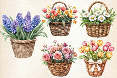 Basket with this Spring Floral Baskets Clipart Bundle, featuring beautiful flower basket designs, ideal for garden collection crafts.