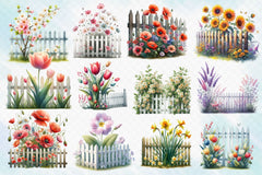 Spring Flower Fence Clipart Bundle 3