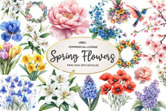 Brighten your projects with the Spring Flowers Clipart Bundle, featuring vibrant floral designs perfect for seasonal crafts, invitations, and digital art.