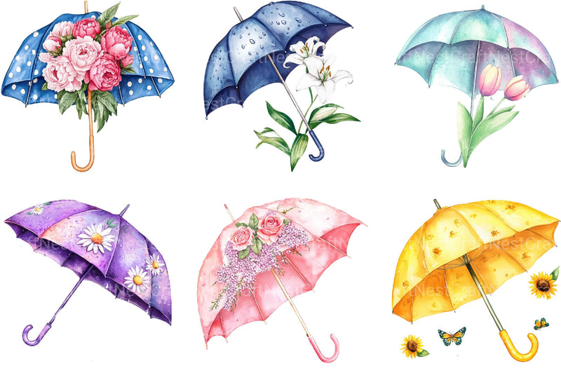 Bloom with this Spring Flowers Umbrella Clipart Bundle, featuring floral umbrella designs, ideal for spring crafts.