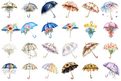 Shade with this Spring Flowers Umbrella Clipart Bundle, featuring floral umbrella designs, ideal for spring crafts.
