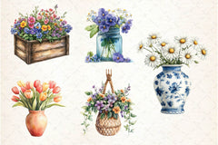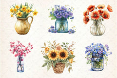 Beautiful spring flower arrangements in vases for seasonal decor projects.