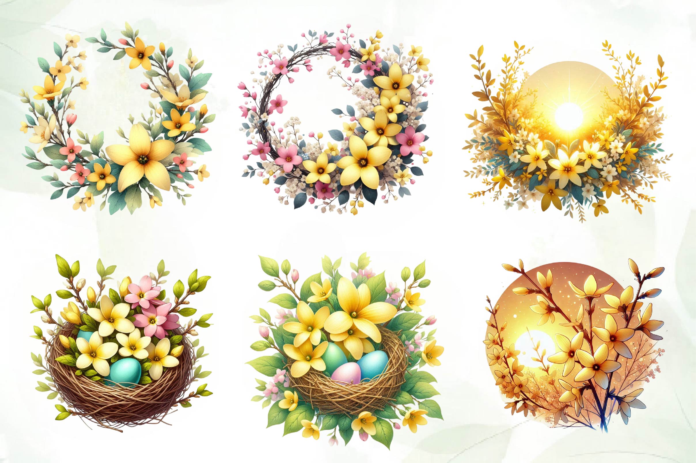 Bloom with this Spring Forsythia Flower Clipart Bundle, featuring yellow spring flower designs, perfect for seasonal floral crafts.