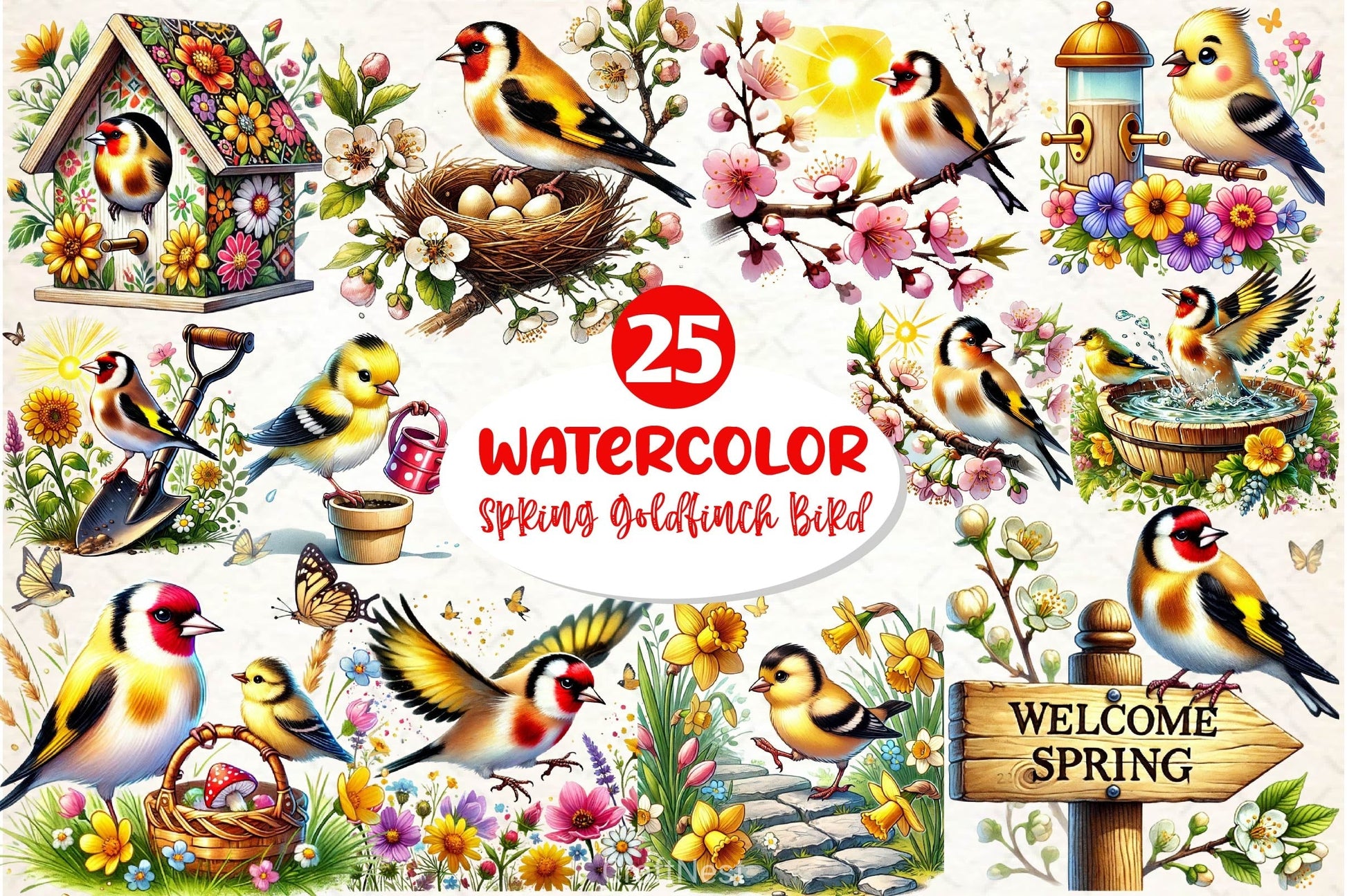 Spring Goldfinch Bird Clipart Bundle 2