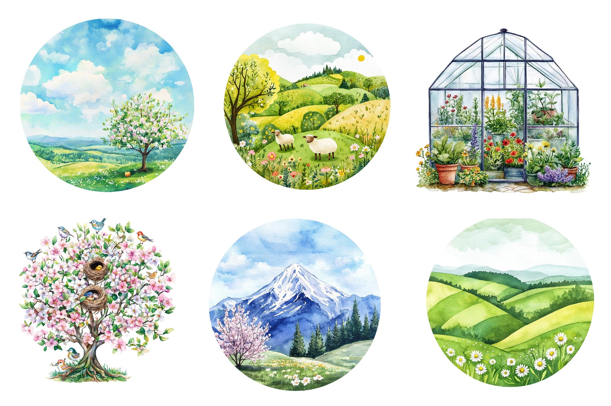 Spring Landscapes Round Clipart Bundle