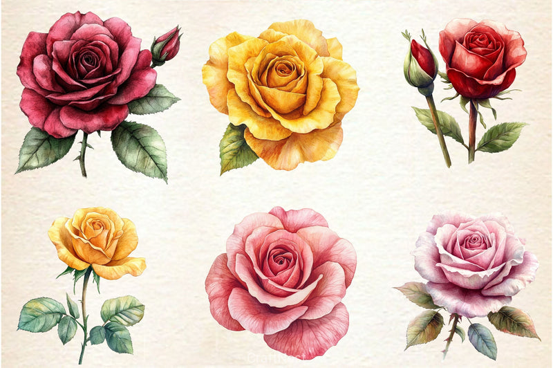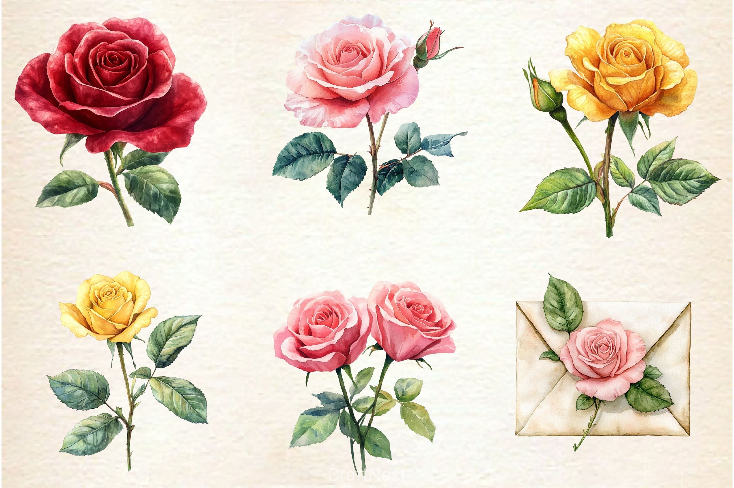 Vintage lithograph style roses perfect for elegant spring flower projects.