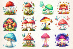 Enchant with this Spring Magical Mushrooms Clipart Bundle, featuring mystical fungi designs, perfect for fantasy garden crafts.