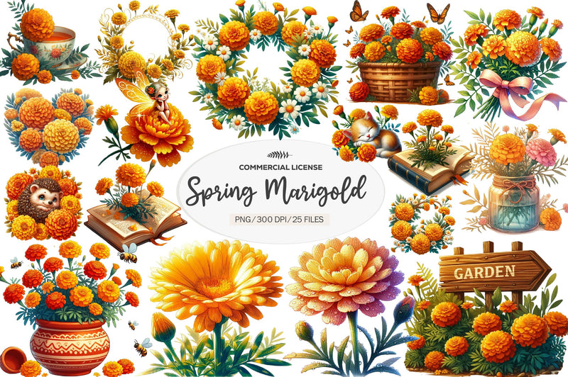 Spring Marigold Clipart Bundle