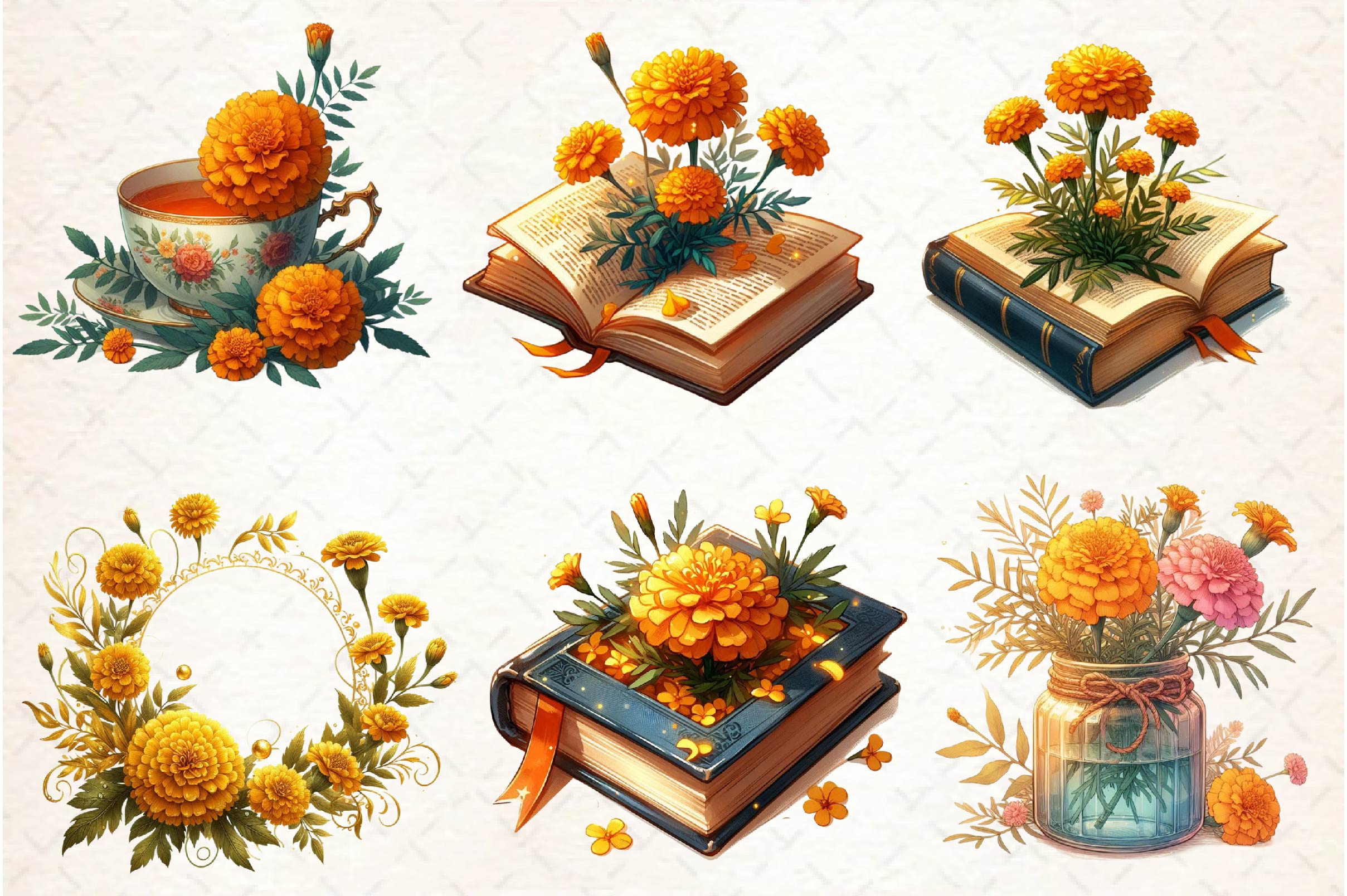 Gold with this Spring Marigold Clipart Bundle, featuring spring marigold designs, perfect for seasonal flower crafts.
