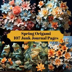 Unfold the magic of spring with our Spring Origami-themed digital junk journal. Featuring delicate paper cranes, blooming flowers, and intricate folds, this journal provides a serene space for capturing memories, doodling, and expressing your creativity amidst the artistry and precision of origami-inspired designs, perfect for those who appreciate the beauty of handmade crafts and the meditative tranquility of folding paper amidst the gentle breeze of springtime.