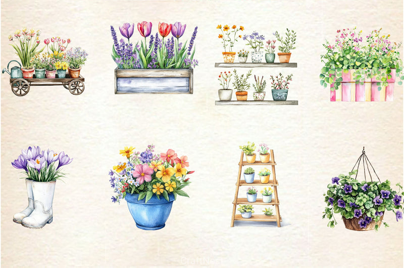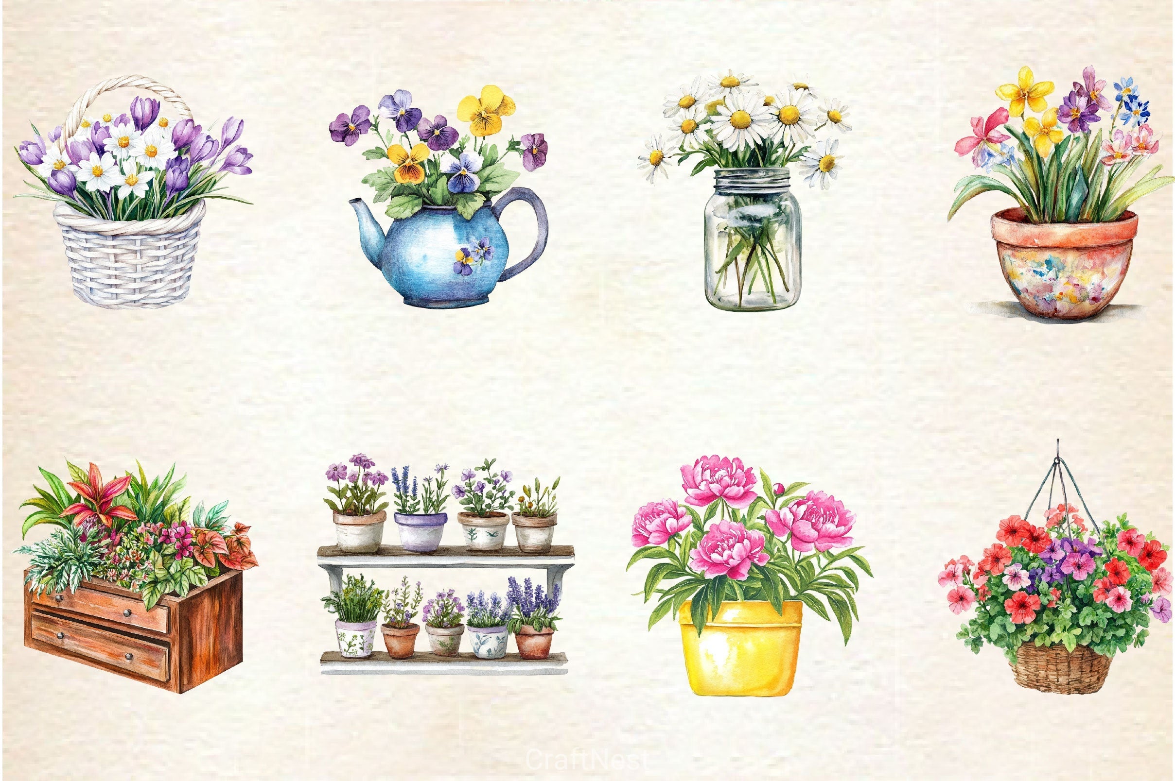 Plant with this Spring Planters Clipart Bundle, featuring seasonal container designs, perfect for garden planting crafts.