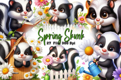 Spring with this Spring Skunk Clipart Bundle, featuring spring skunk designs, perfect for seasonal animal crafts.