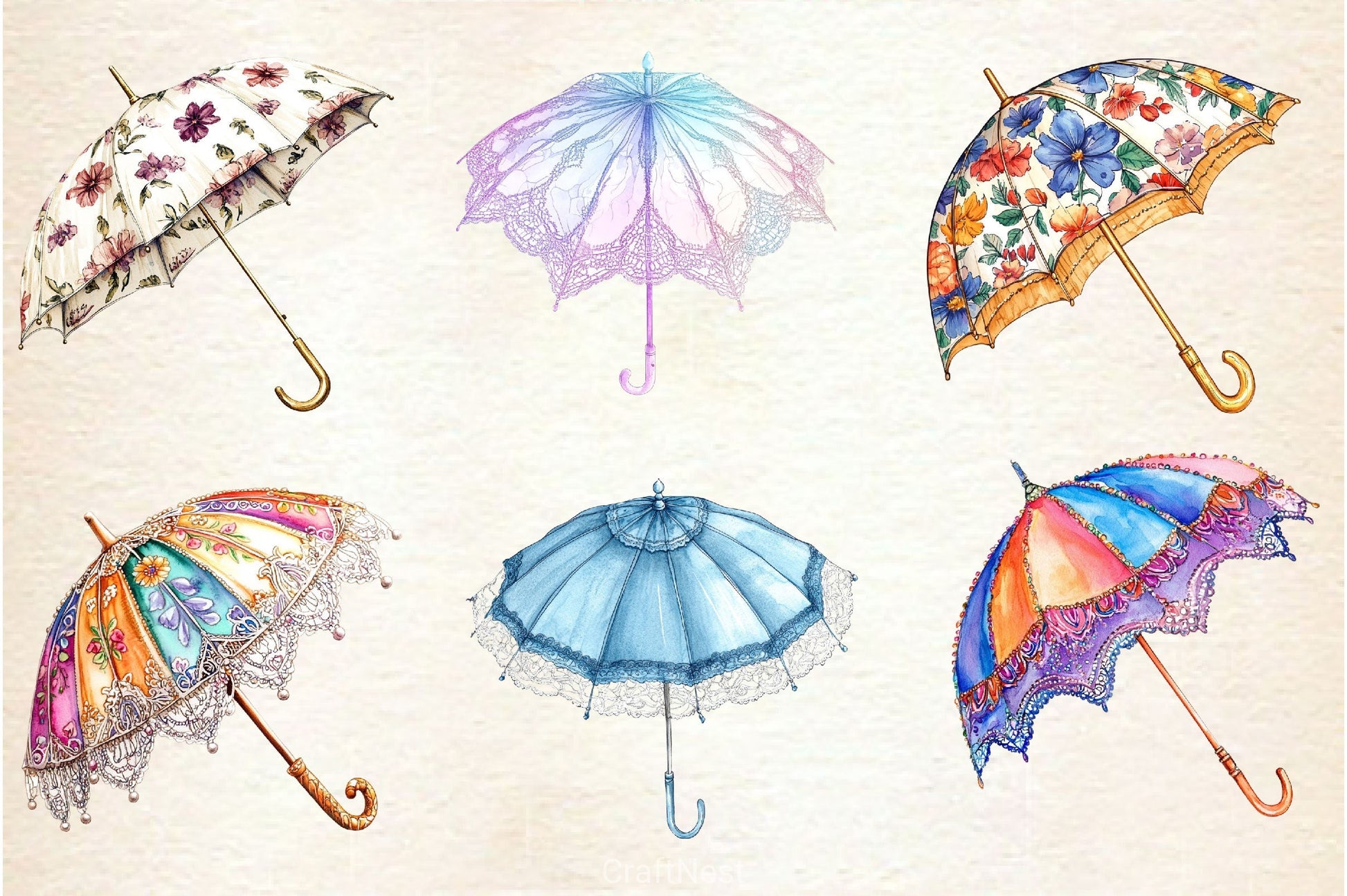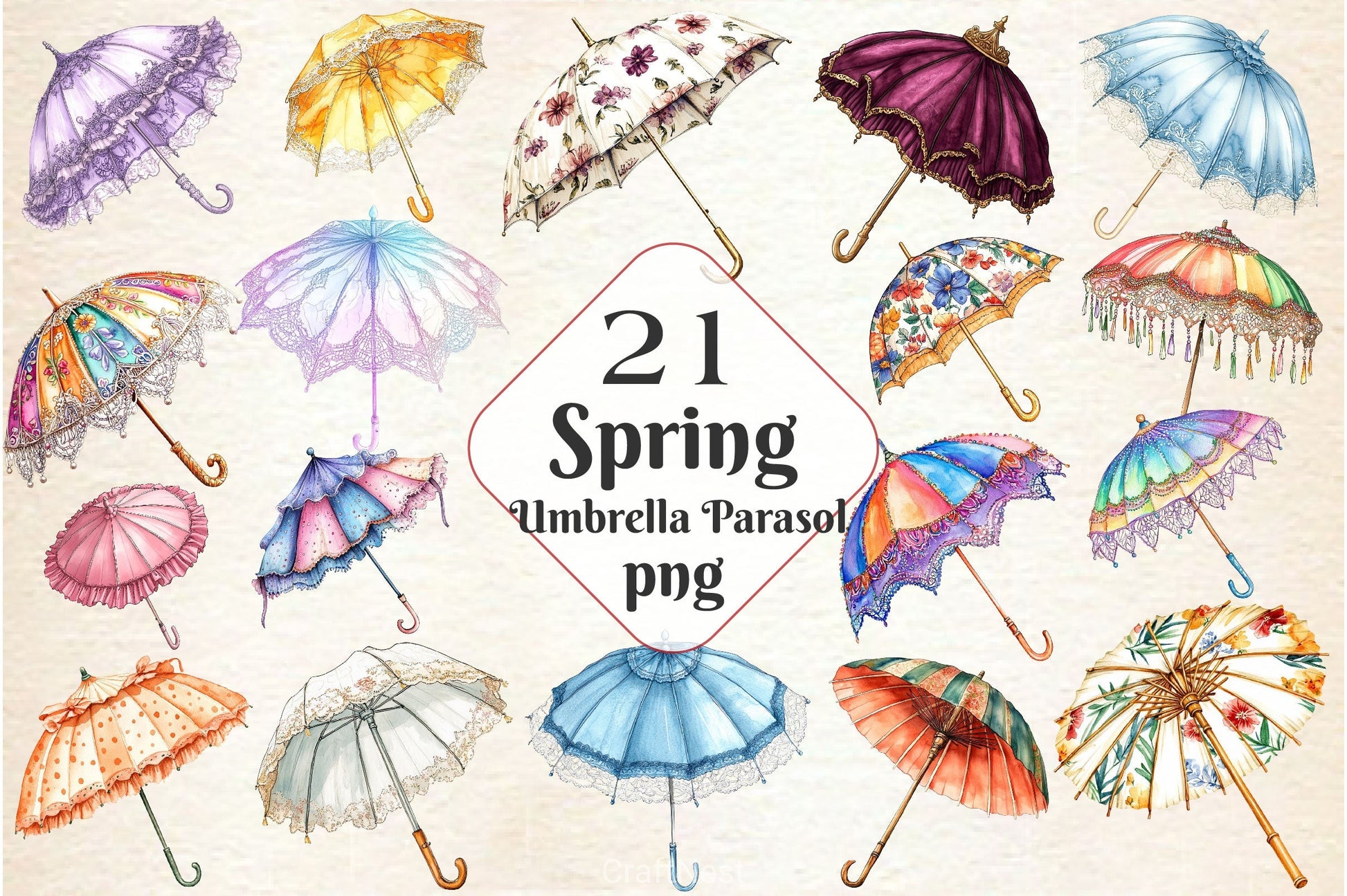 Shade with this Spring Umbrella Parasol Clipart Bundle, featuring seasonal protection designs, perfect for spring fashion crafts.