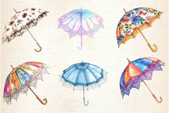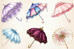 Spring Umbrella Parasol Clipart Bundle