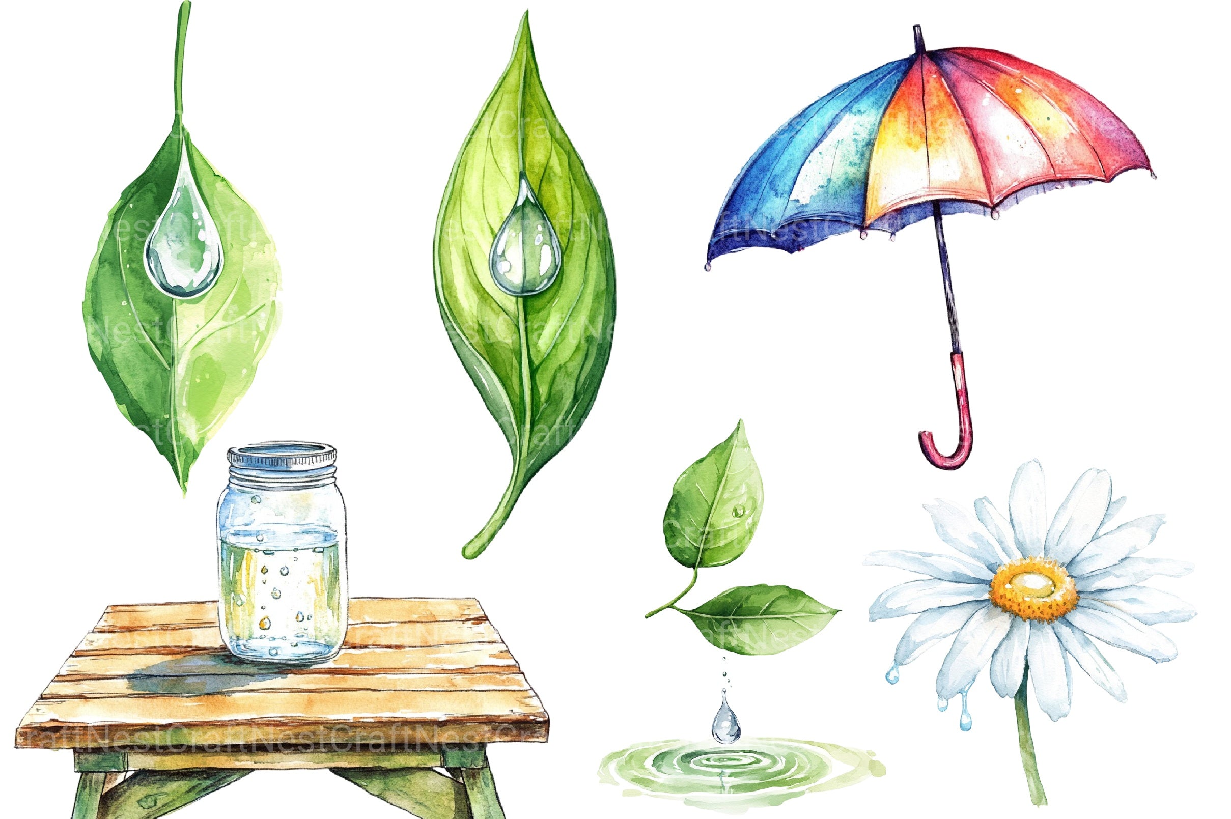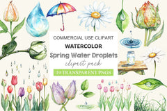 Refresh with this Spring Water Droplets Clipart Bundle, featuring fresh droplet designs, perfect for spring nature crafts.