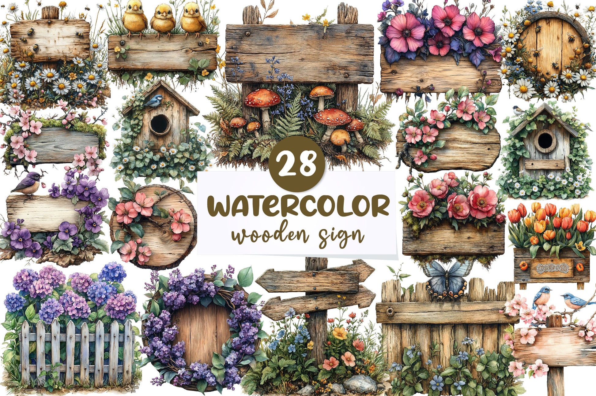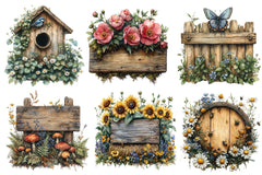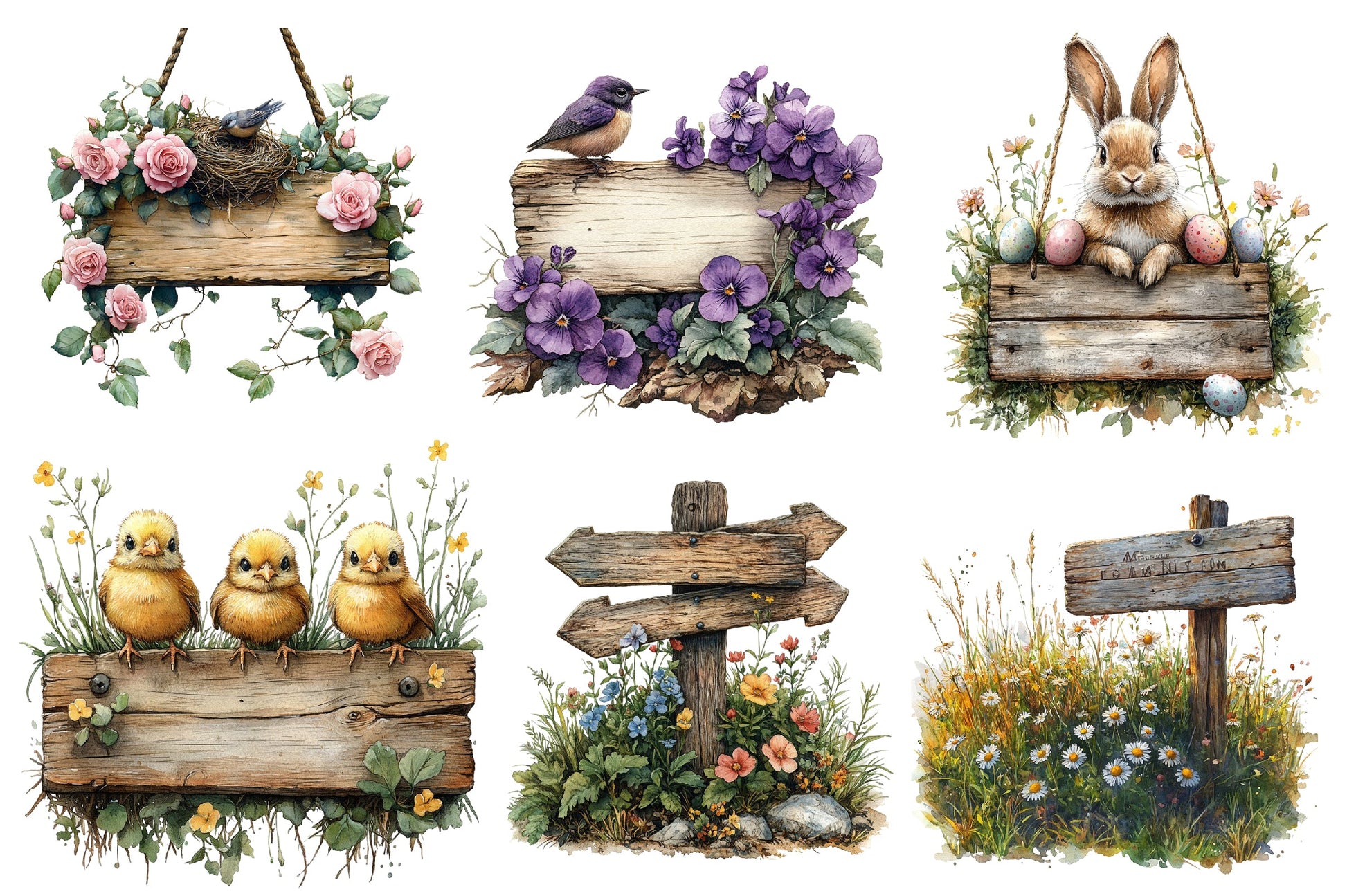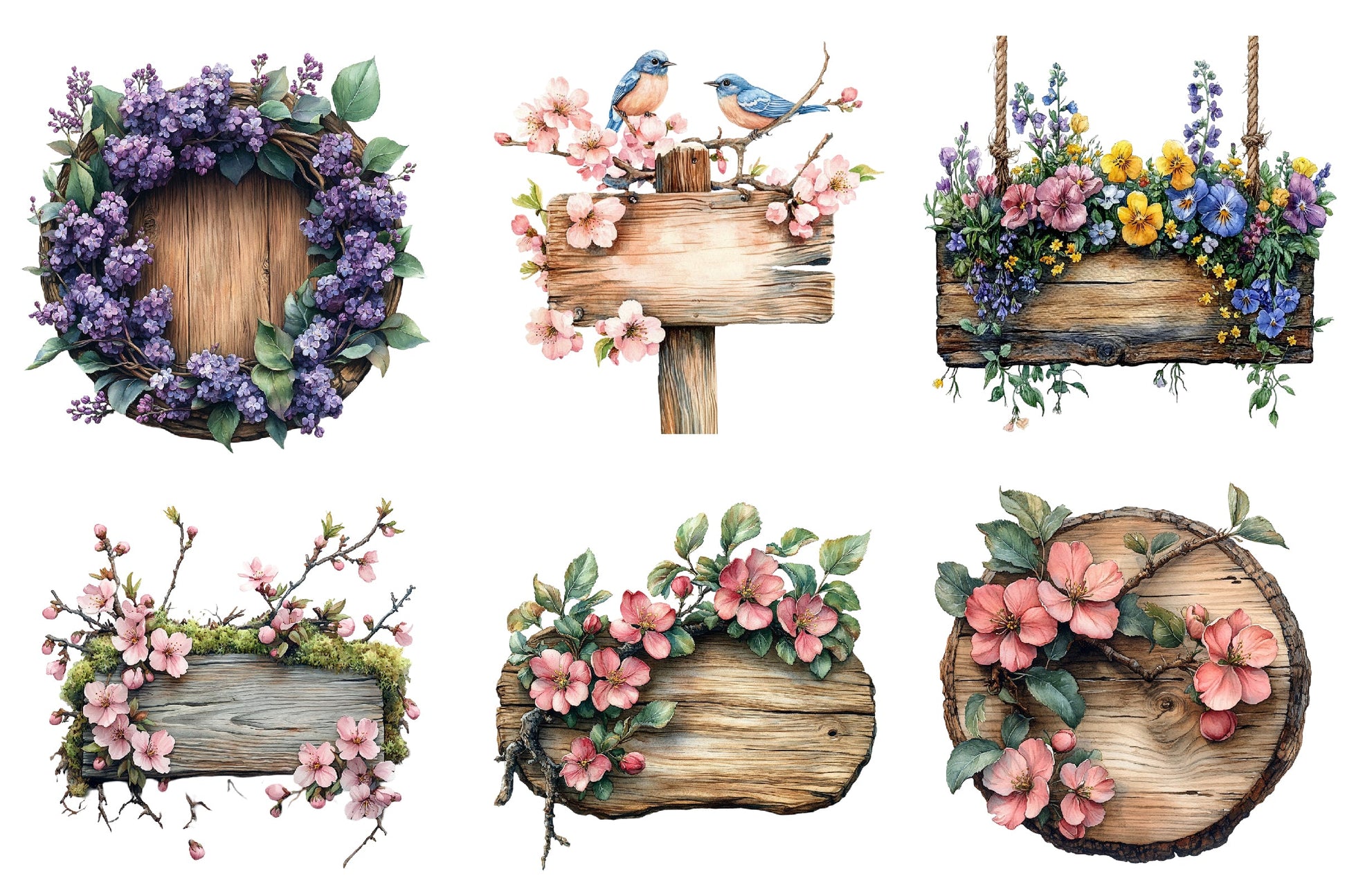 Sign with this Spring Wooden Sign Board Clipart Bundle, featuring spring sign designs, perfect for seasonal decoration crafts.