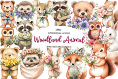Bloom with this Spring Woodland Animal With Bouquet Clipart Bundle, featuring flower animal designs, ideal for spring nature crafts.