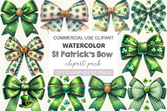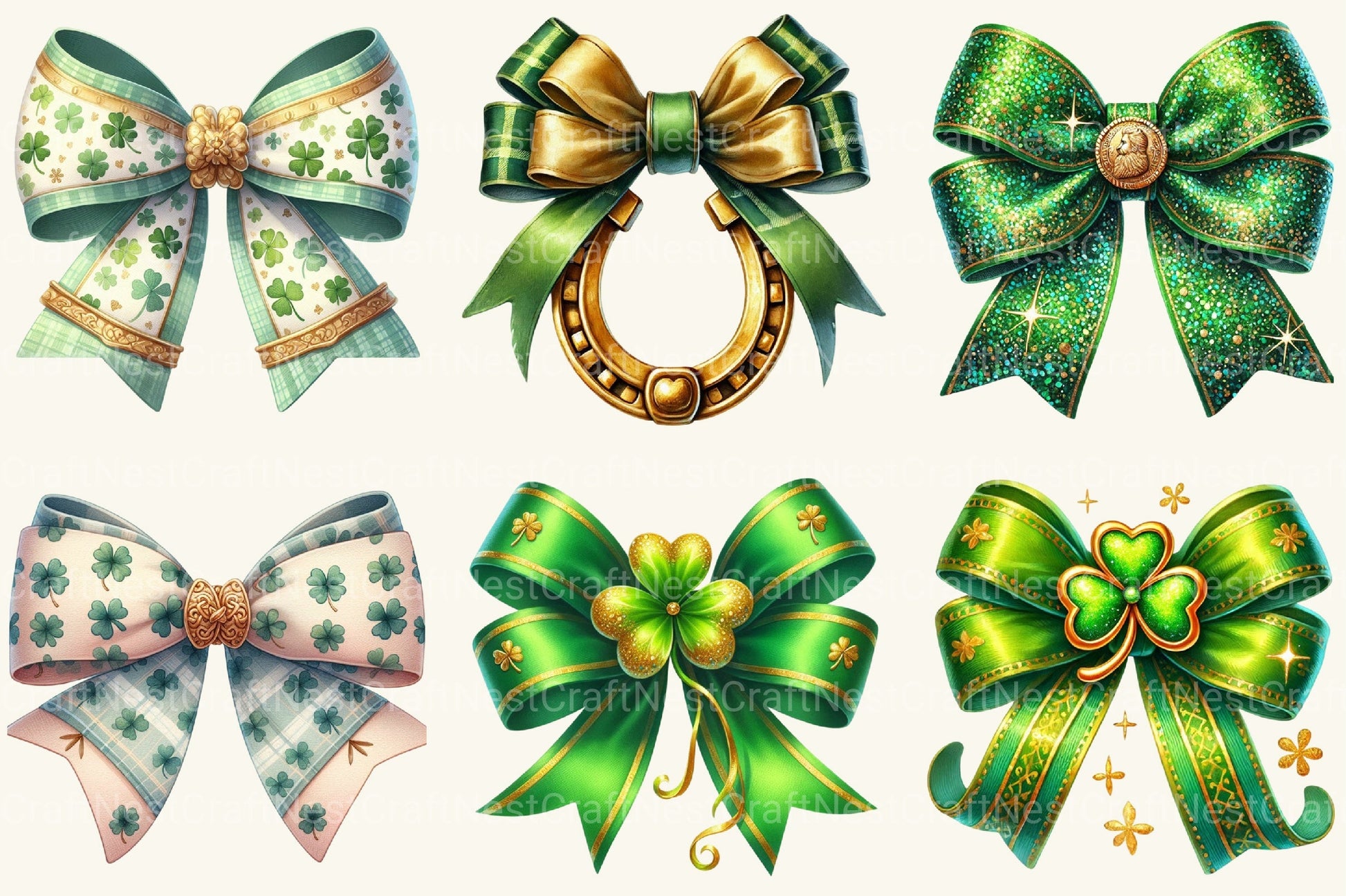Tie with this St Patrick's Bow Clipart Bundle, featuring lucky bow designs, ideal for Irish accessory crafts.