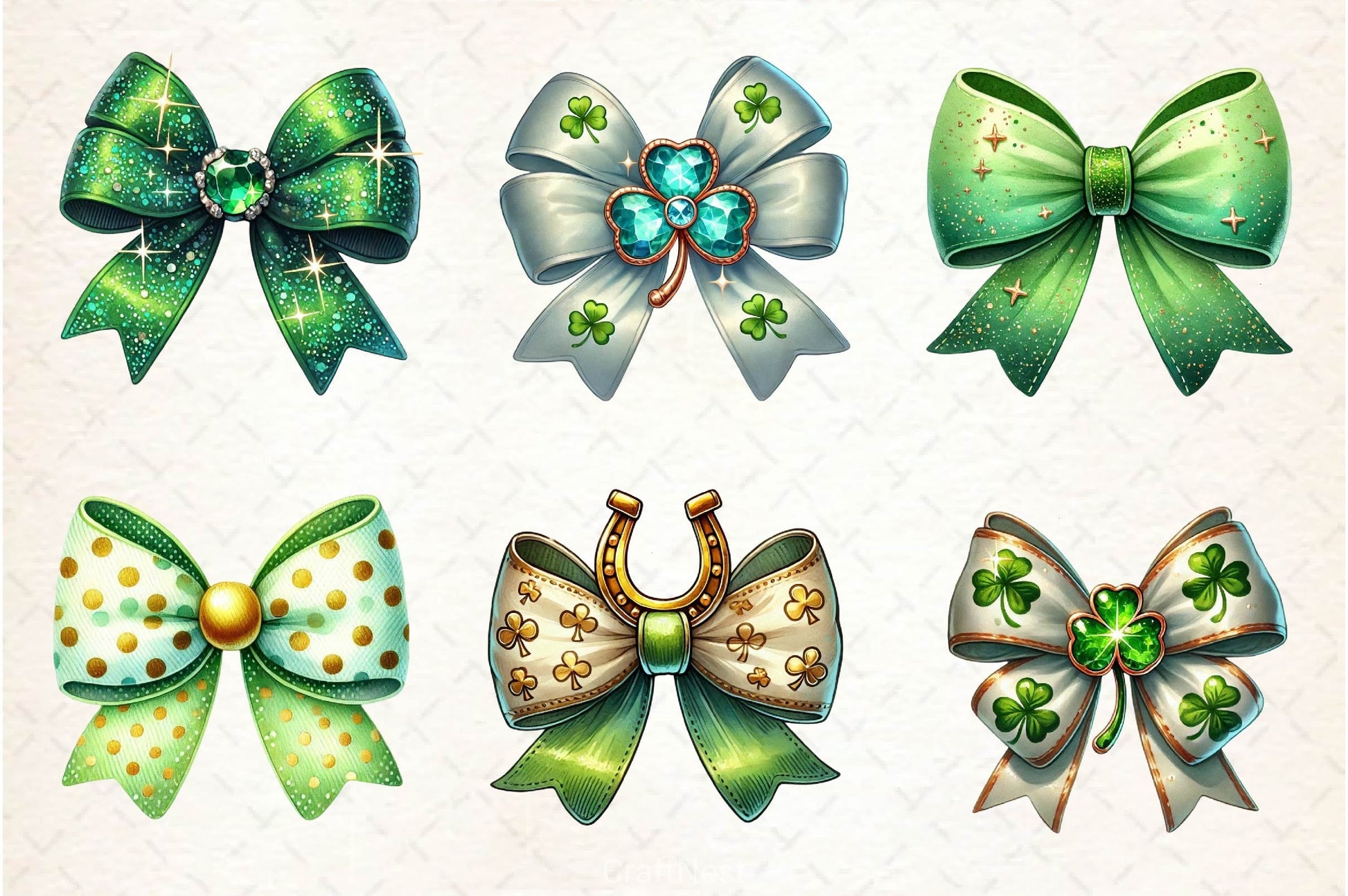 Celebrate with this St Patricks Day Bow Clipart Bundle, featuring festive Irish bow designs, perfect for lucky holiday crafts.