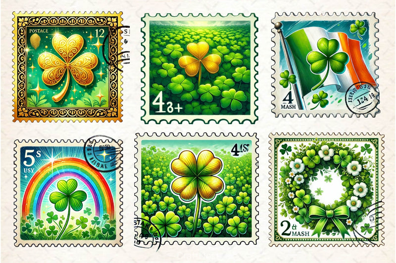 Vintage St. Patrick's Day postage stamps for Irish mail projects.