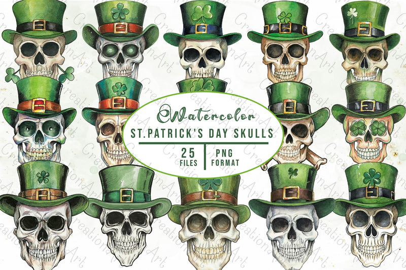 Gothic with this St Patricks Day Skulls Clipart Bundle, featuring Irish skull designs, perfect for dark holiday crafts.