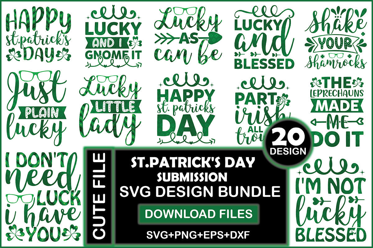Lucky with this St Patrick's Day SVG Bundle, featuring shamrock designs, ideal for Irish crafts.