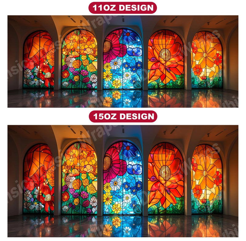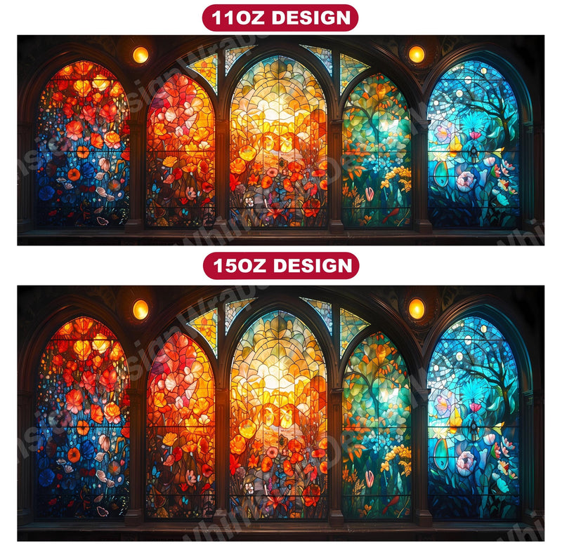 Bring the beauty of stained glass into your home with our Stained Glass digital mug wraps. These wraps feature mesmerizing designs inspired by the intricate patterns found in stained glass windows, adding a touch of artistic flair to your morning routine. Enjoy a moment of tranquility and elegance with these stunning mug wraps, ideal for anyone looking to elevate their coffee or tea experience with timeless beauty.