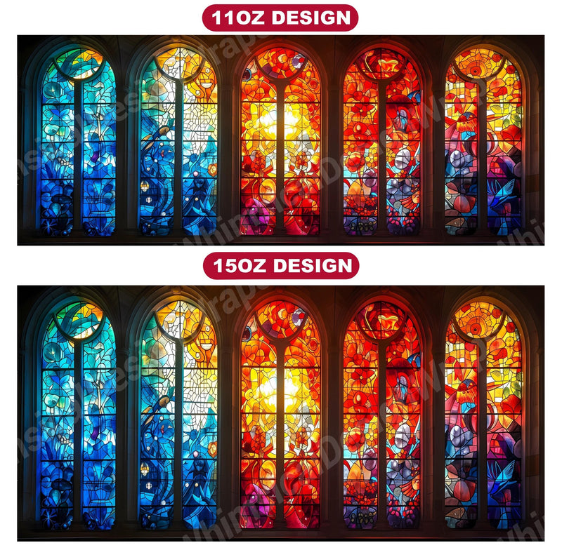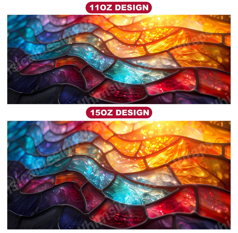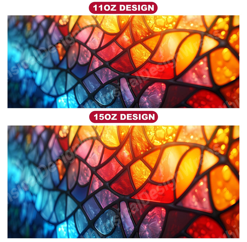 Transform your coffee breaks into a visual delight with our Stained Glass digital mug wraps. Inspired by the intricate patterns of stained glass windows, these wraps feature vibrant and captivating designs that add a touch of artistry to your beverages. Experience the beauty of stained glass art every time you enjoy your favorite drink with these exquisite mug wraps, perfect for anyone who appreciates the elegance and craftsmanship of this timeless art form.