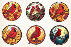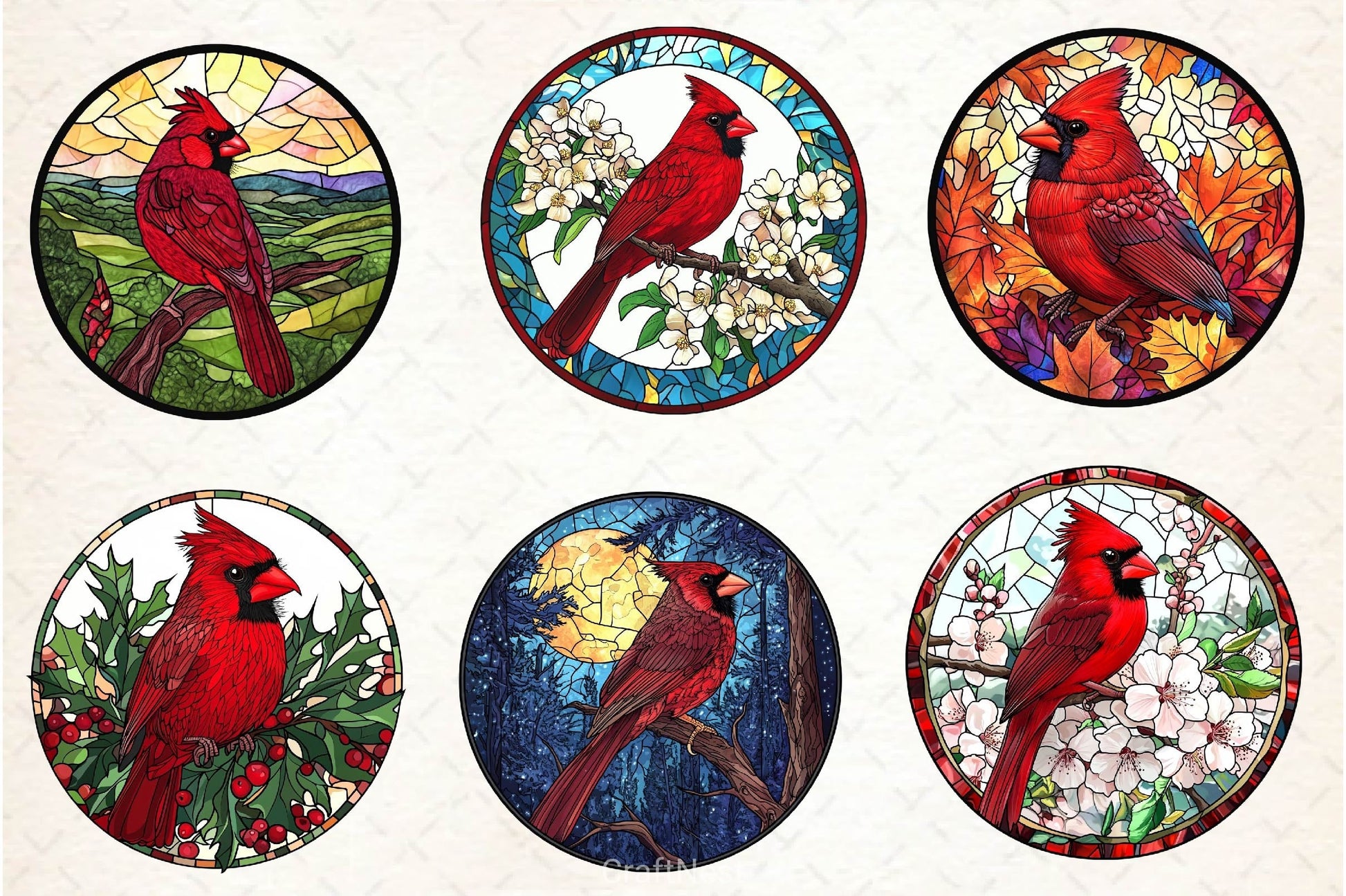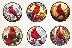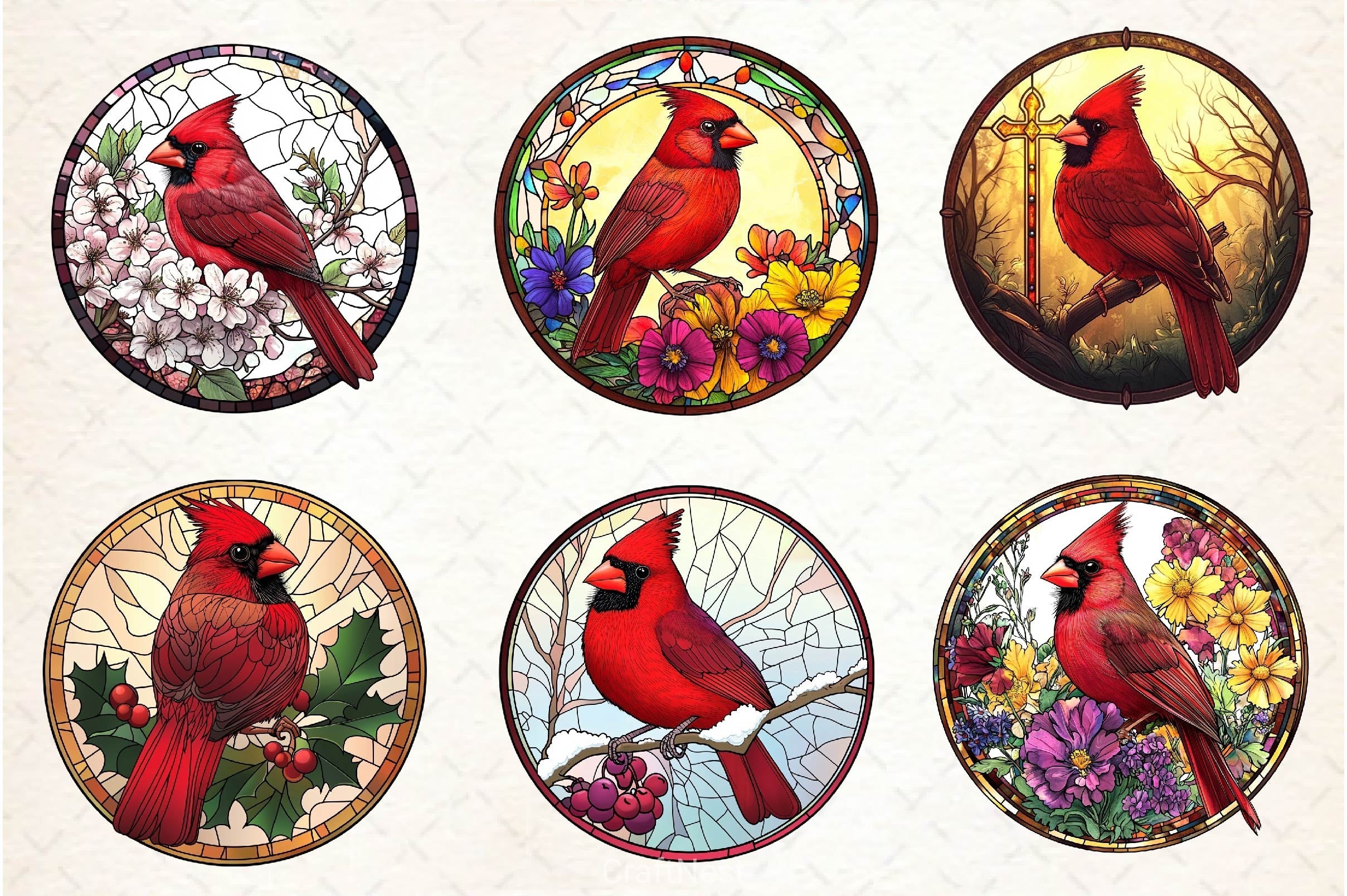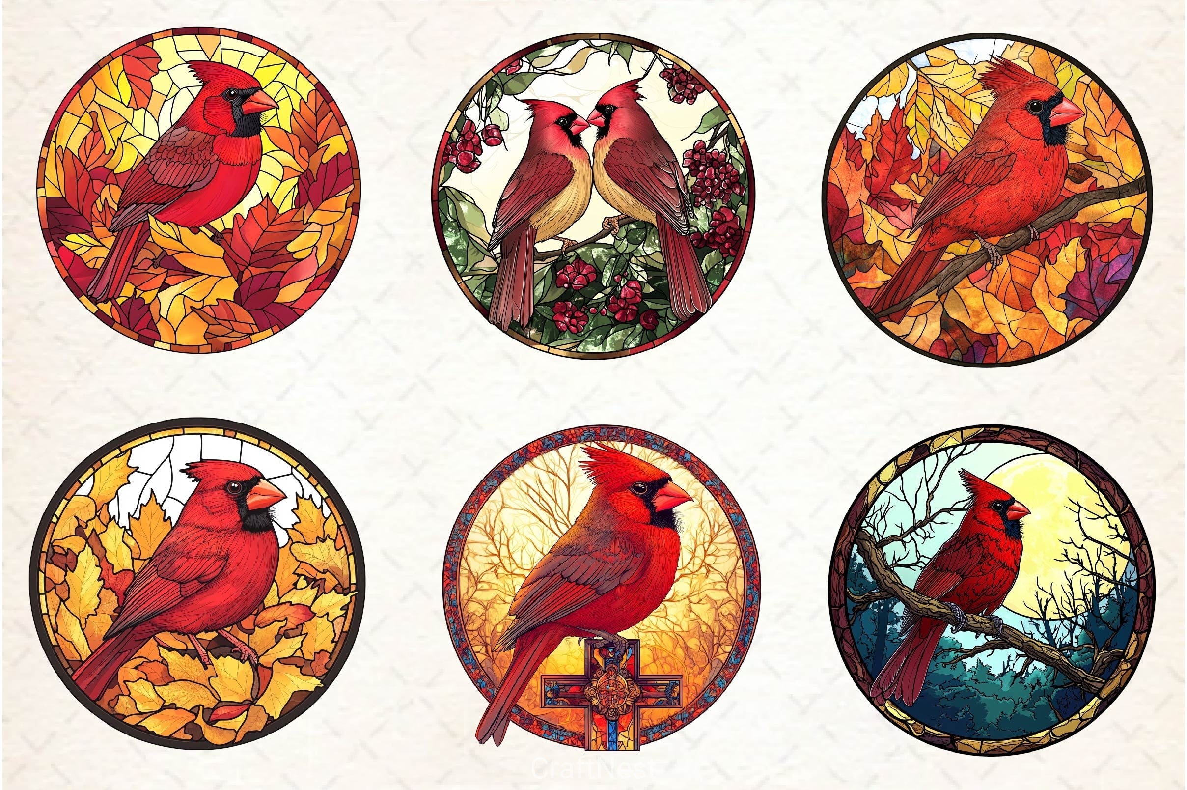 Spin with this Stained Glass Cardinal Bird Wind Spinner Clipart Bundle, featuring rotating red bird designs, perfect for dynamic glass crafts.