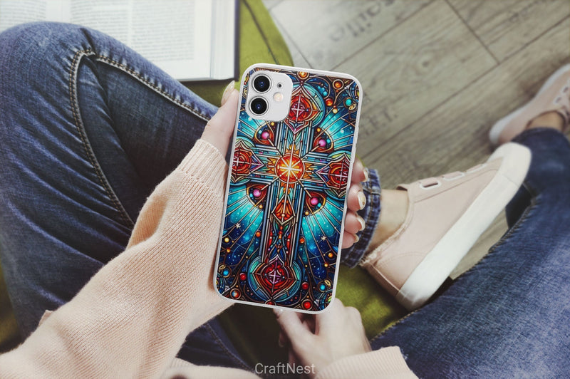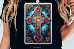 Beautiful stained glass cross tarot designs for spiritual and religious projects.