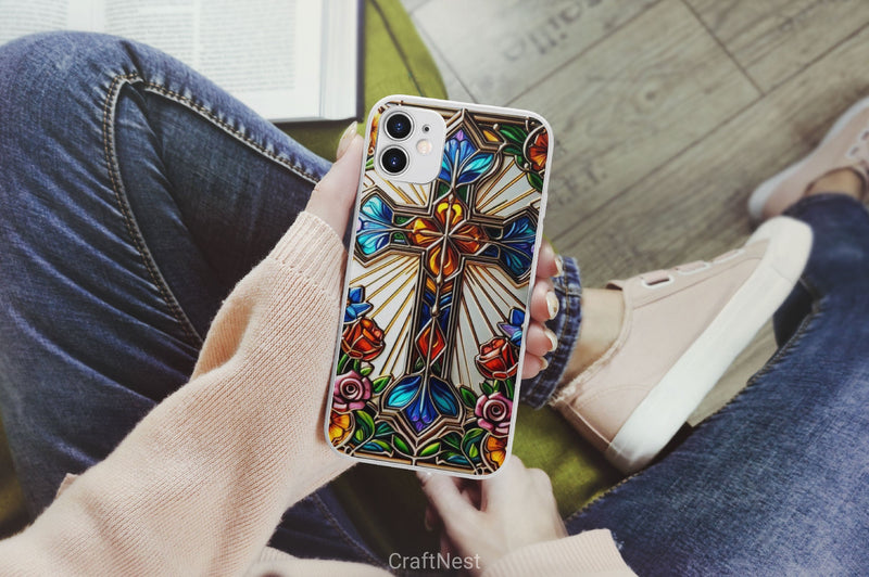 Beautiful stained glass cross tarot designs for spiritual projects.